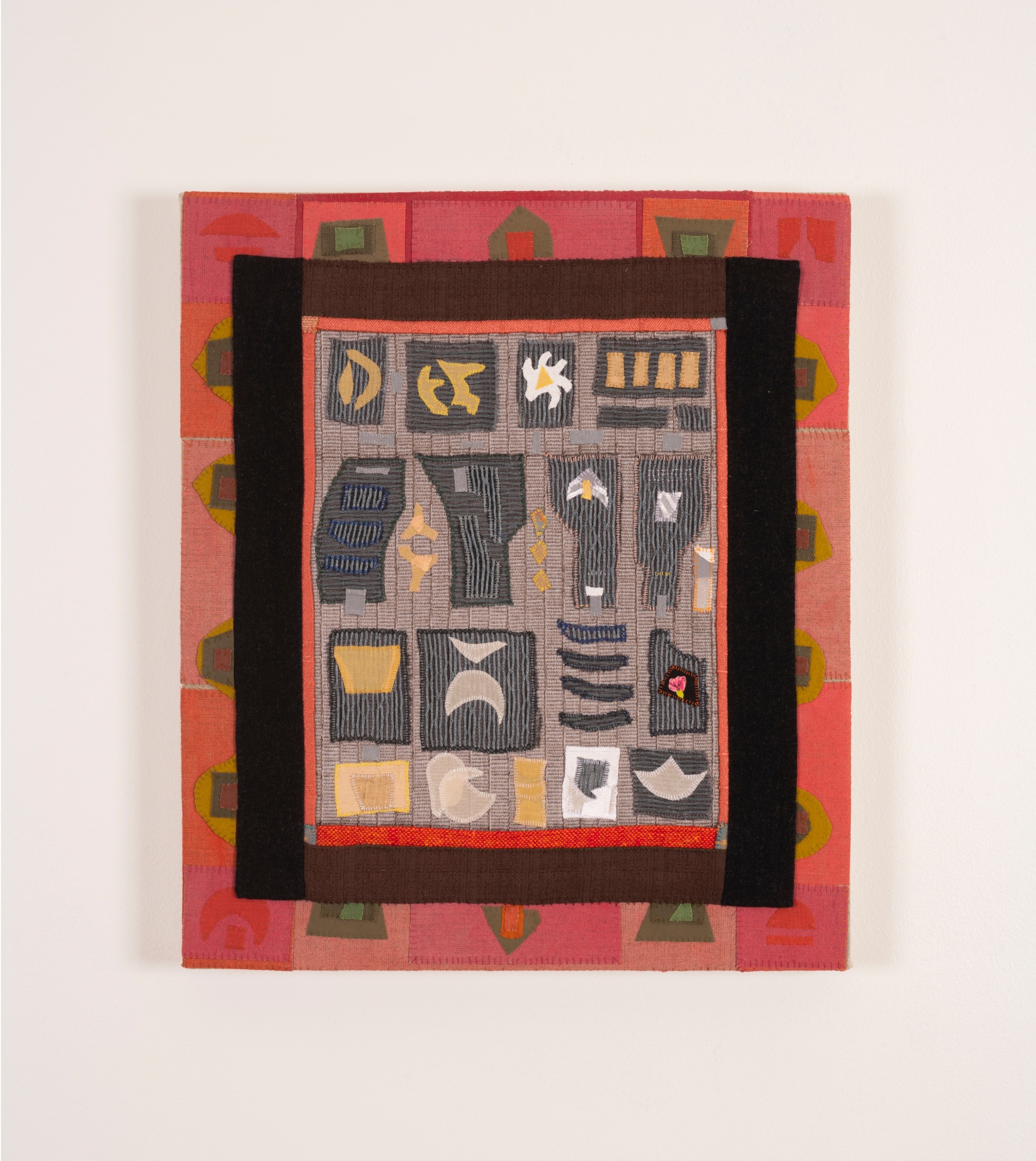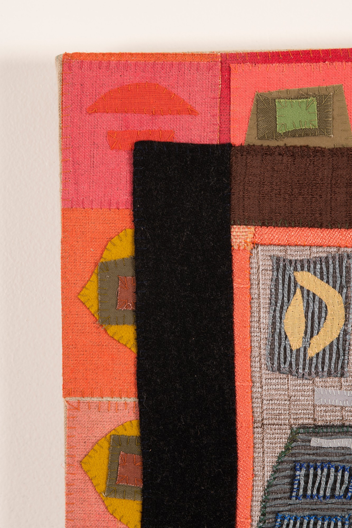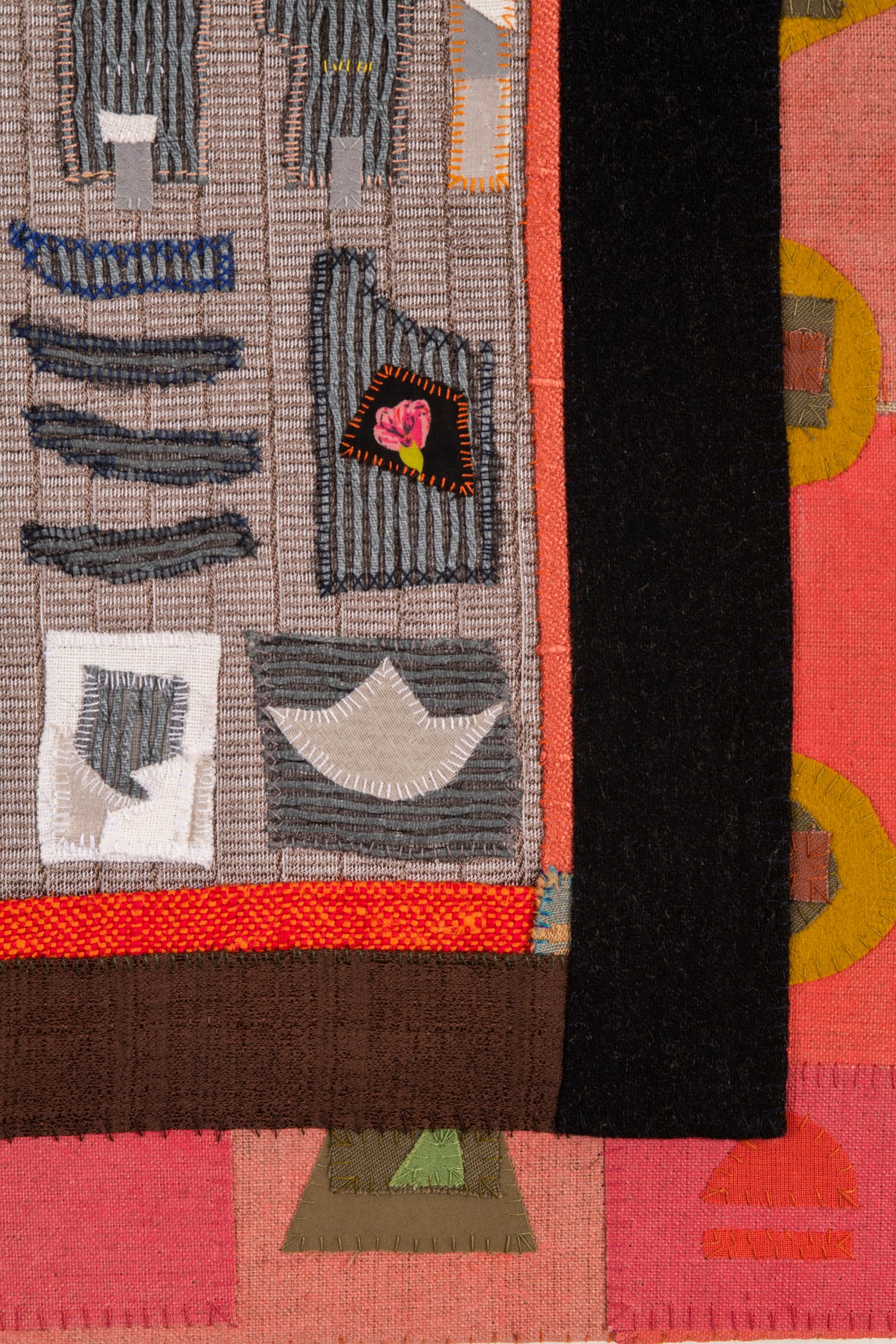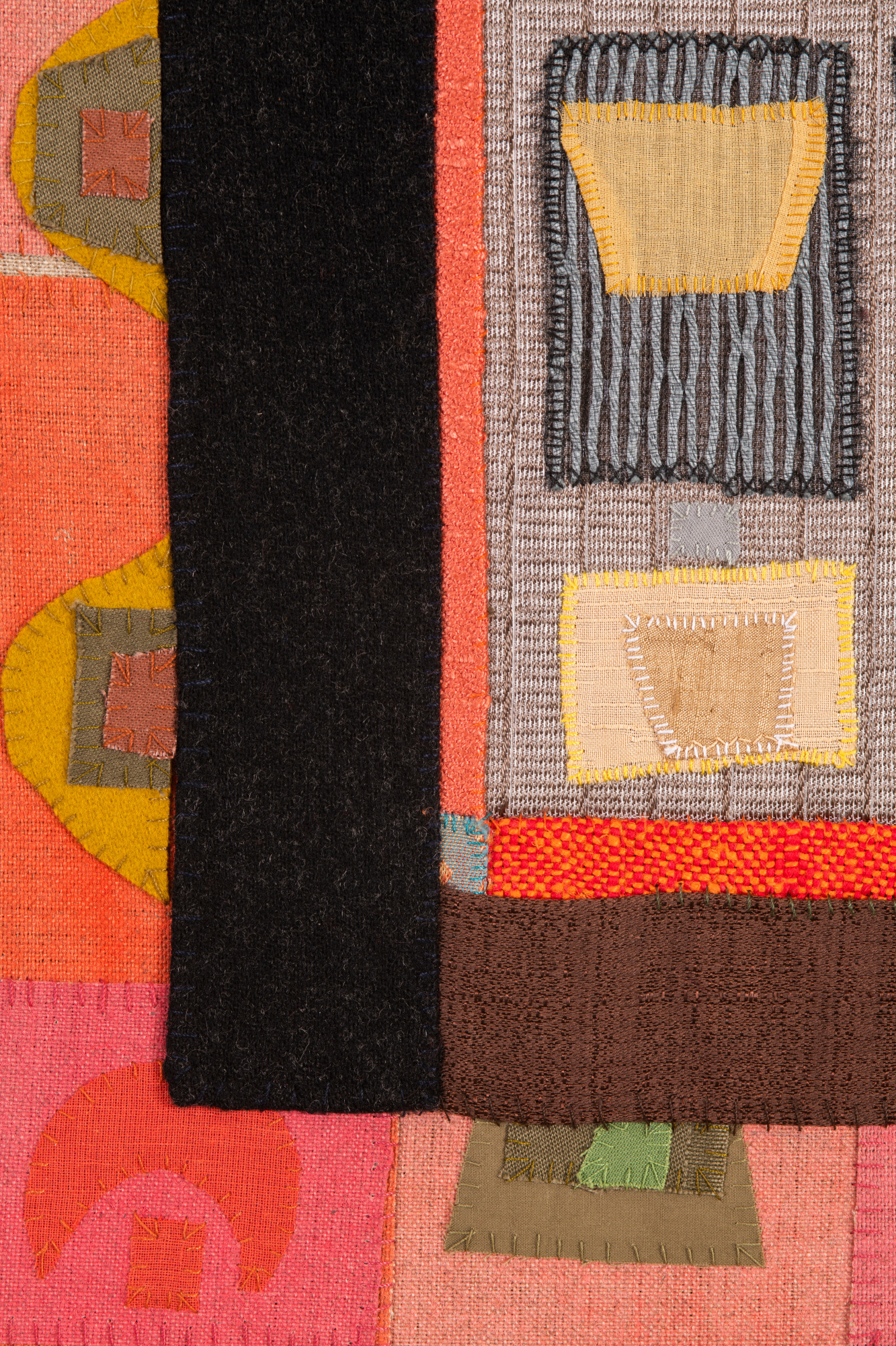 Handsewn fabric collage with acrylic paint