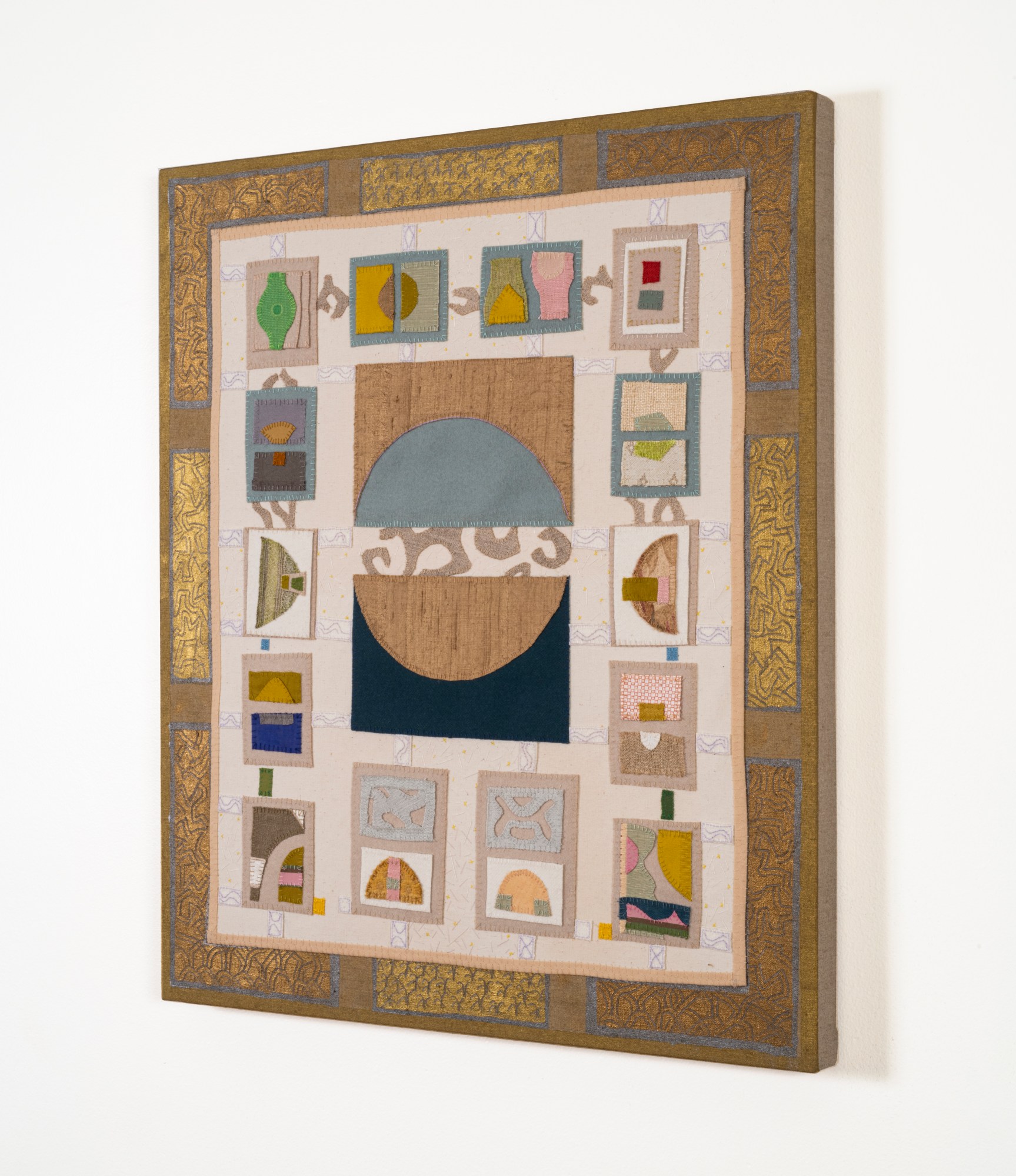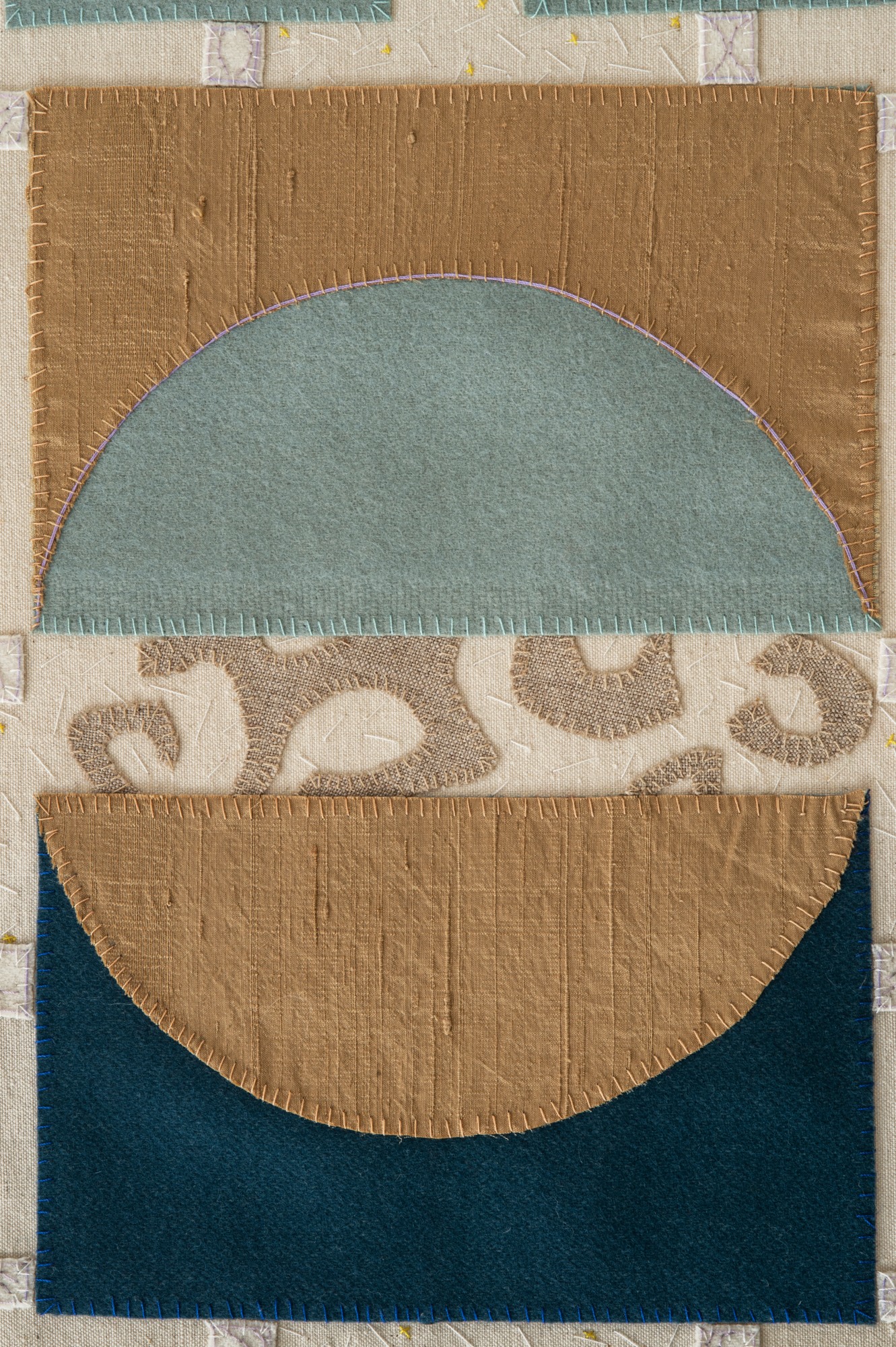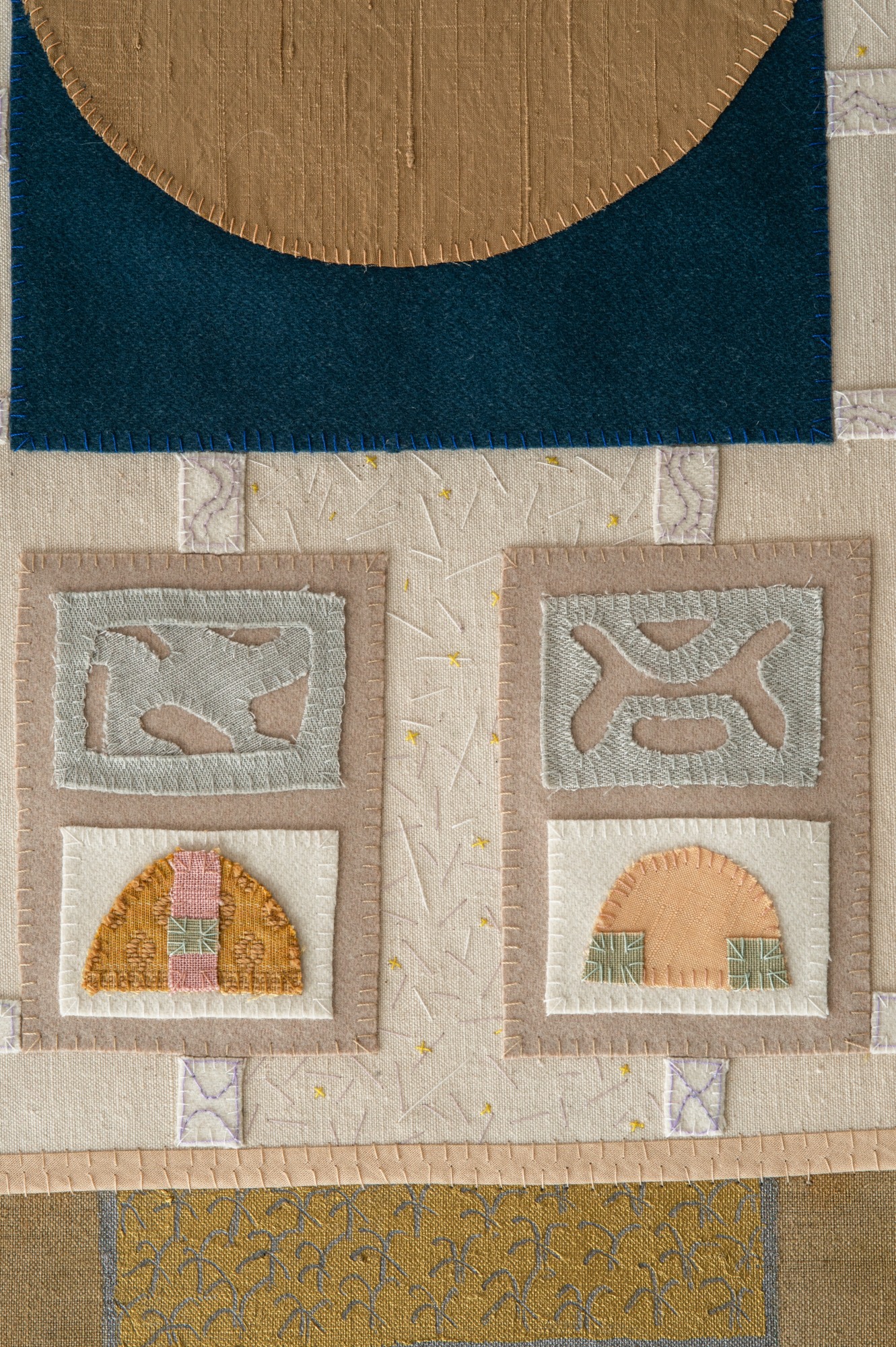 Handsewn fabric collage with acrylic paint