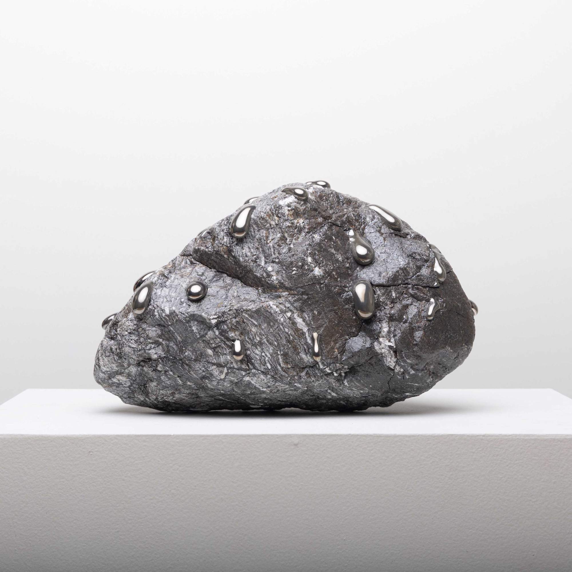 Recomposed Rock with Ceramic Glaze and White Gold