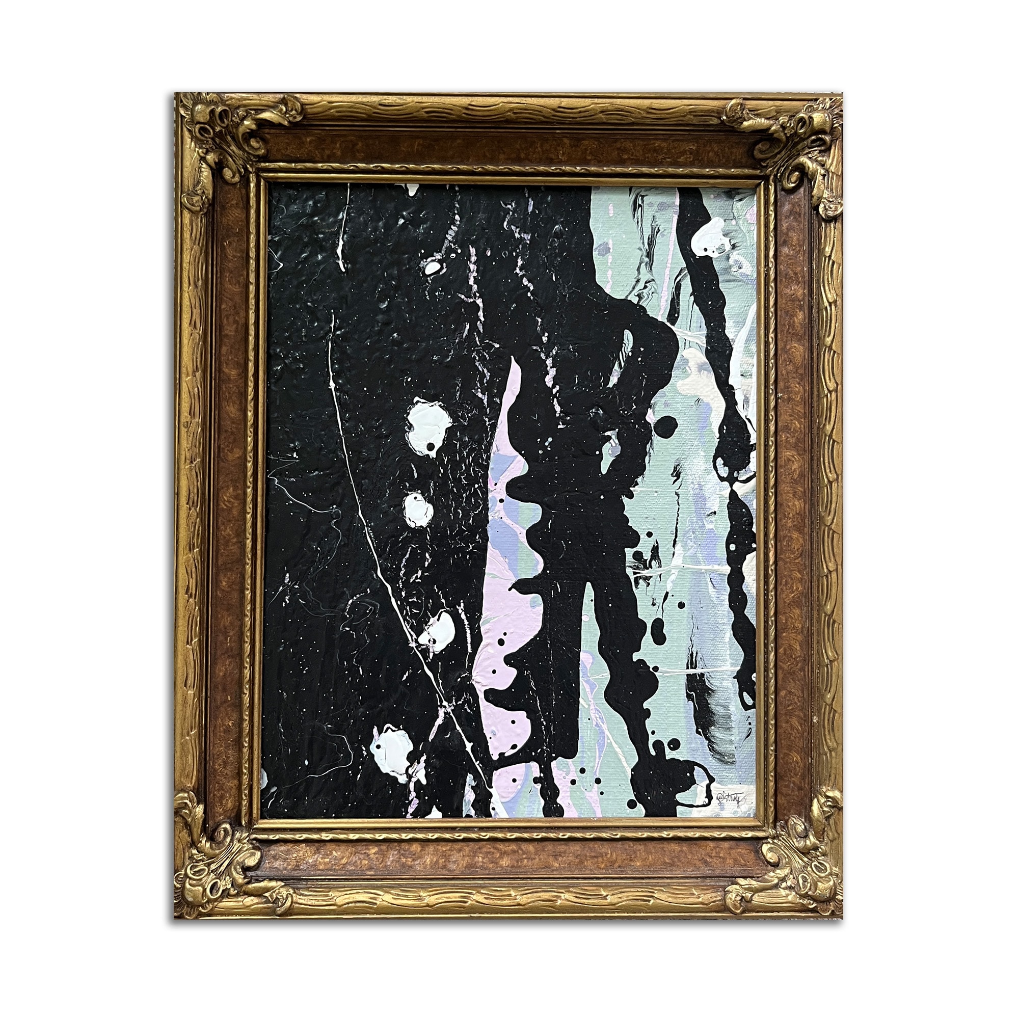 - Acrylic on canvas with reclaimed vintage frame