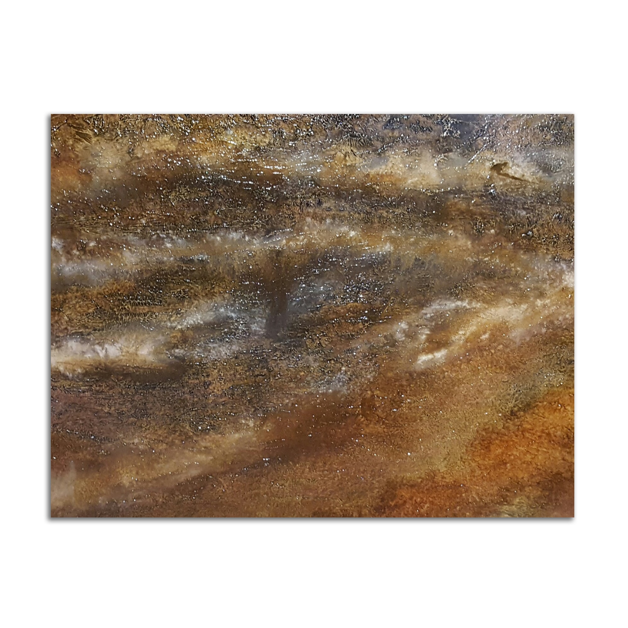 Resin, fluid acrylics, and concrete on hardboard