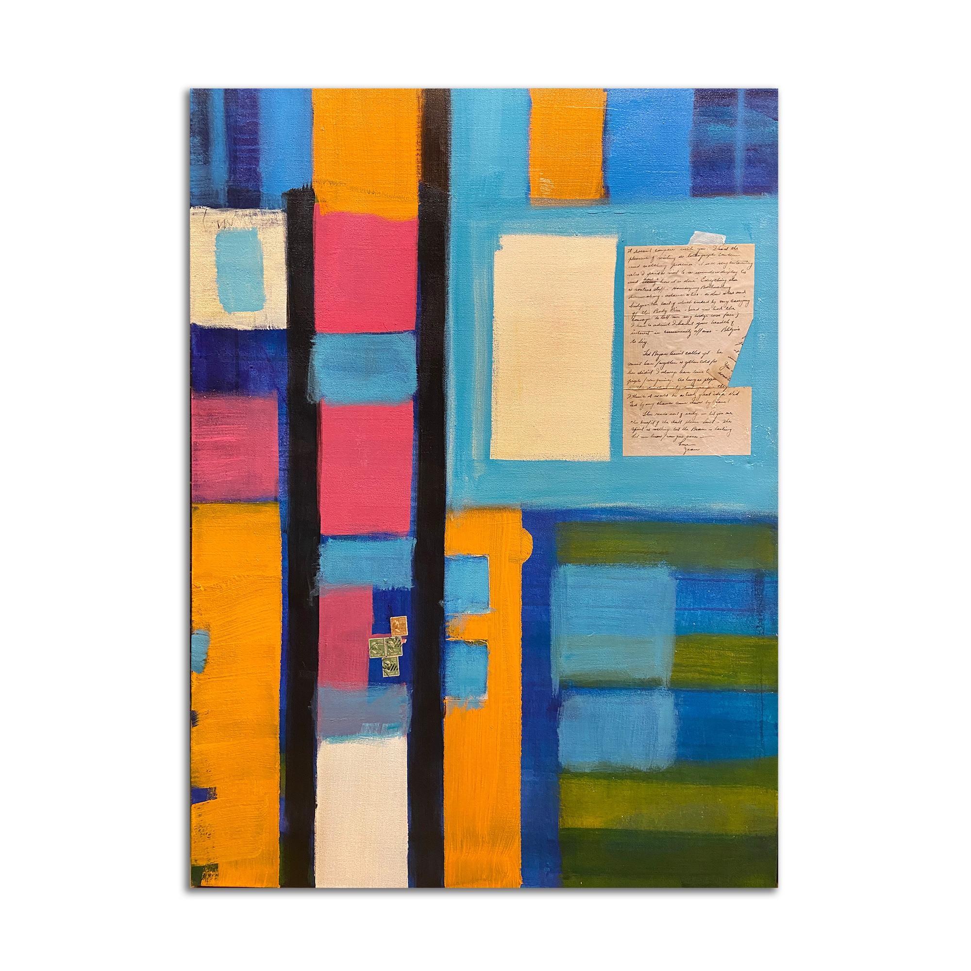- Acrylic, letters, and stamps on canvas