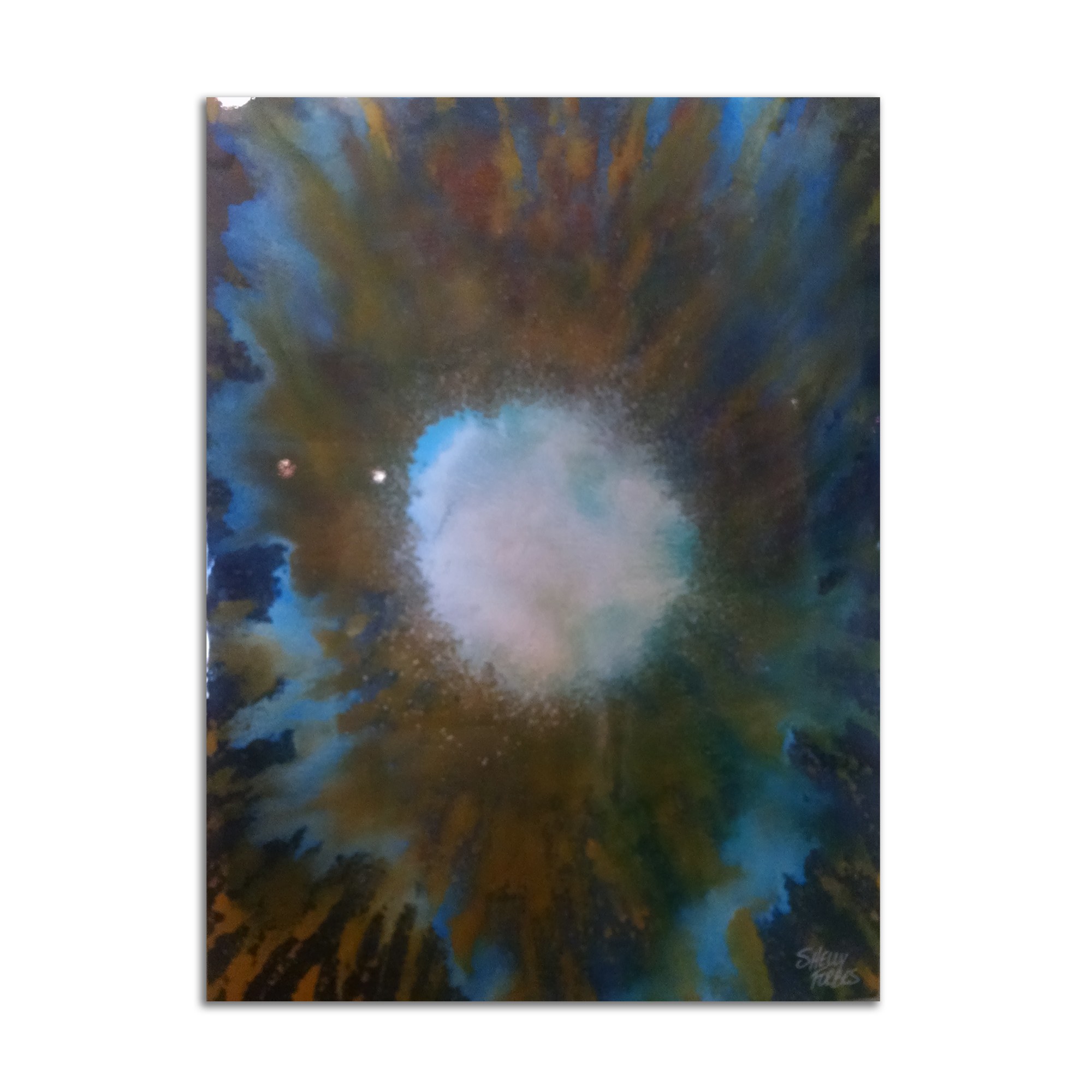 Resin, fluid acrylics, and concrete on hardboard