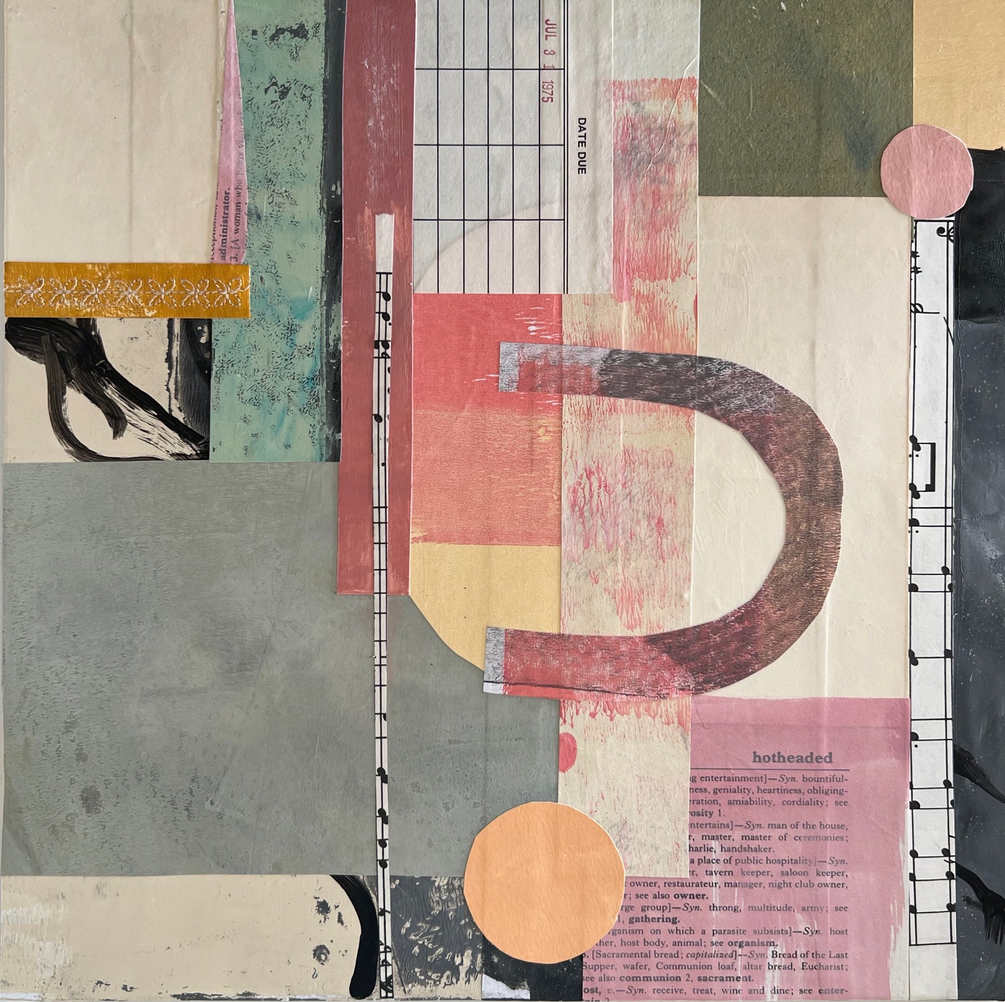 ©Pamela Hirsch, Hotheaded, Paper, Acrylics, Gouache, Thread, 10 x 10 inches