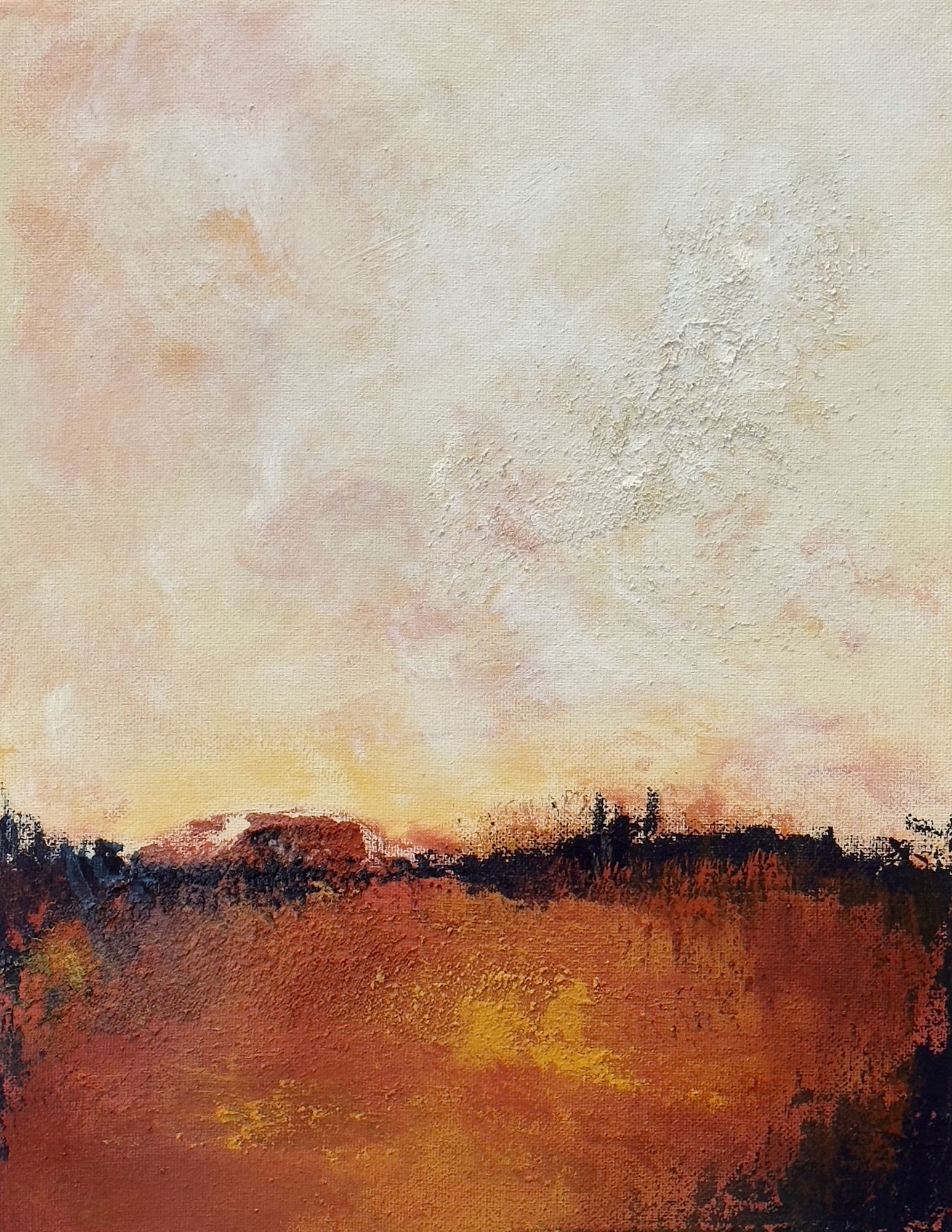 “Fragments of a Journey” is a visual meditation on movement, transformation, and the inner terrain we navigate over time. Each panel—Awakening, Ascent, and Apex—represents a moment within a broader continuum, not as destinations but as points of pause. With textured layers of cream, red oxide, and deep blue, the triptych suggests landforms and horizons, yet remains untethered to any single geography. The deep blue horizon line leads the eye forward, acting as both guide and invitation—reminding us that even at the apex, the journey continues. These works are not about where we arrive, but how we travel, and what we carry in the spaces between.