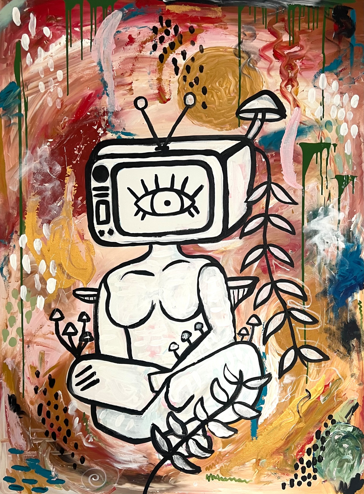 Life is beautiful and stunning, but sometimes we are unable to feel and be a part of it because we are absorbed with ourselves and our pasts. This painting is about being in the moment and moving forward, because if we don't we will become disconnected from life.