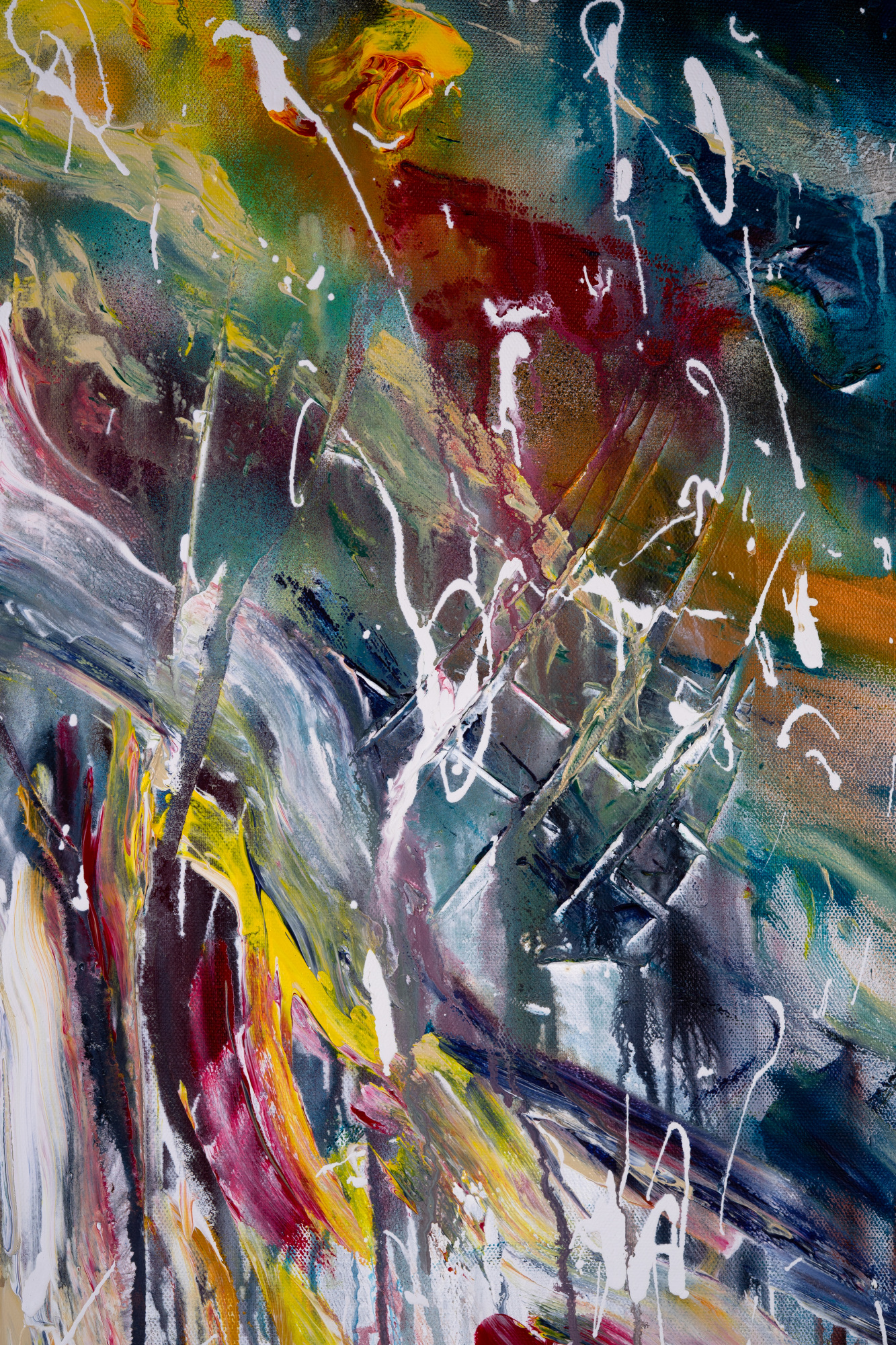 Acrylic On Canvas, Alcohol Inks, Collage