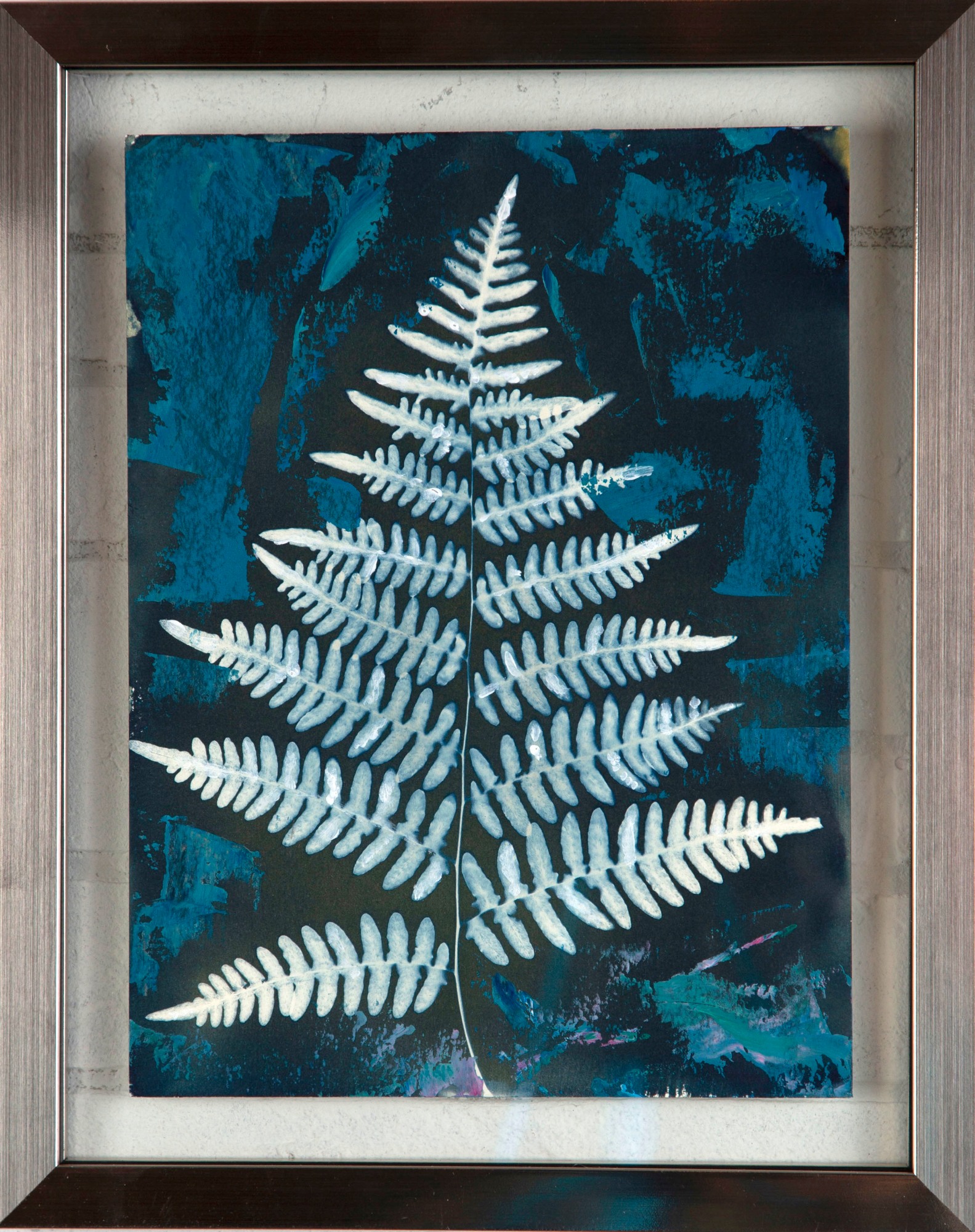 Framed, hand painted cyanotype print