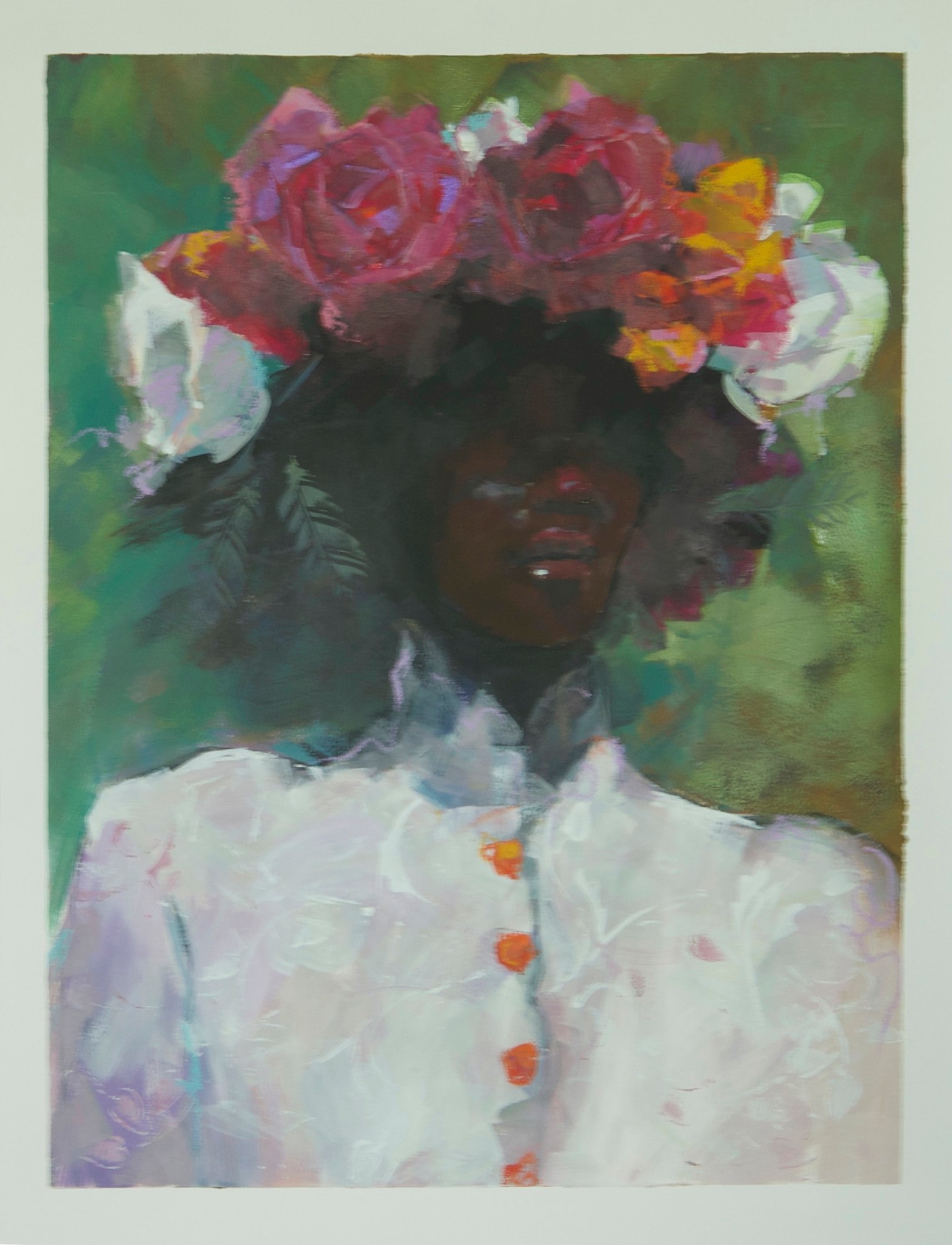 This was the wedding dress at the finale of the Ebony Fashion Fair exhibit at the MN History Center a few years ago. She was so dramatic and stunning, I couldn't help painting her.