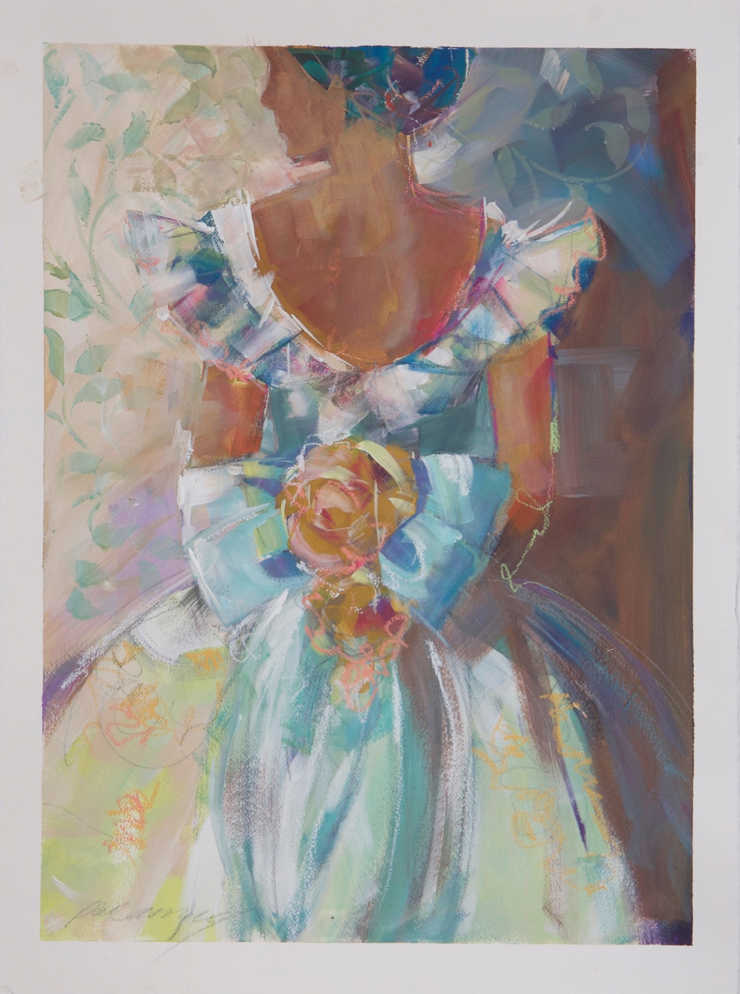 Another Free wheeling experiment with color and figure...the back view of dramatic gown with back details... lots of greenery!