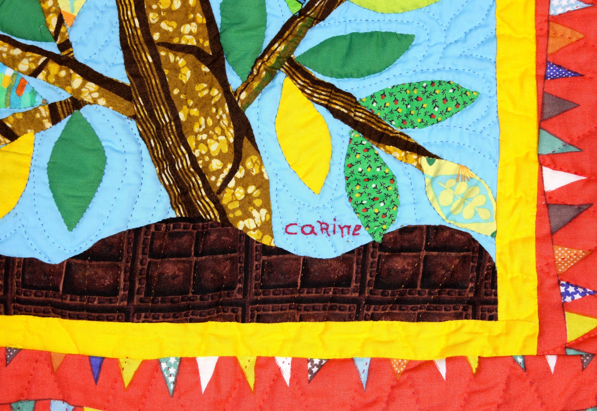 Hand appliquéd, quilted and embroidered on pieced cottons. Sleeve on reverse for hanging. Complementary copy of Patience To Raise the Sun included with your purchase.