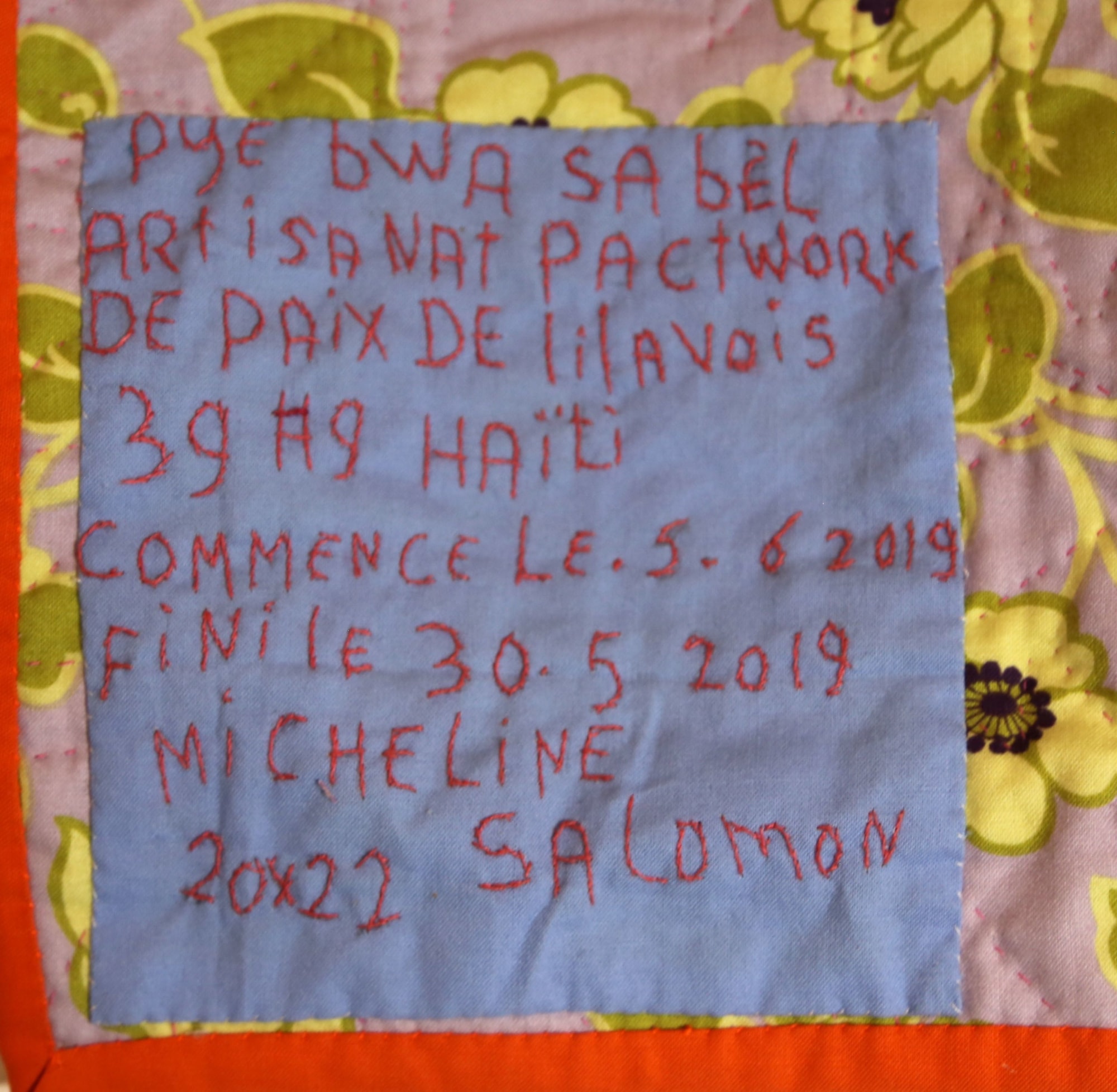 The importance of trees in Haiti is celebrated in this beautifully hand-stitched piece made of 100% cotton. Sleeve on reverse for hanging. A complementary copy of Patience To Raise the Sun exhibition catalog included with purchase.