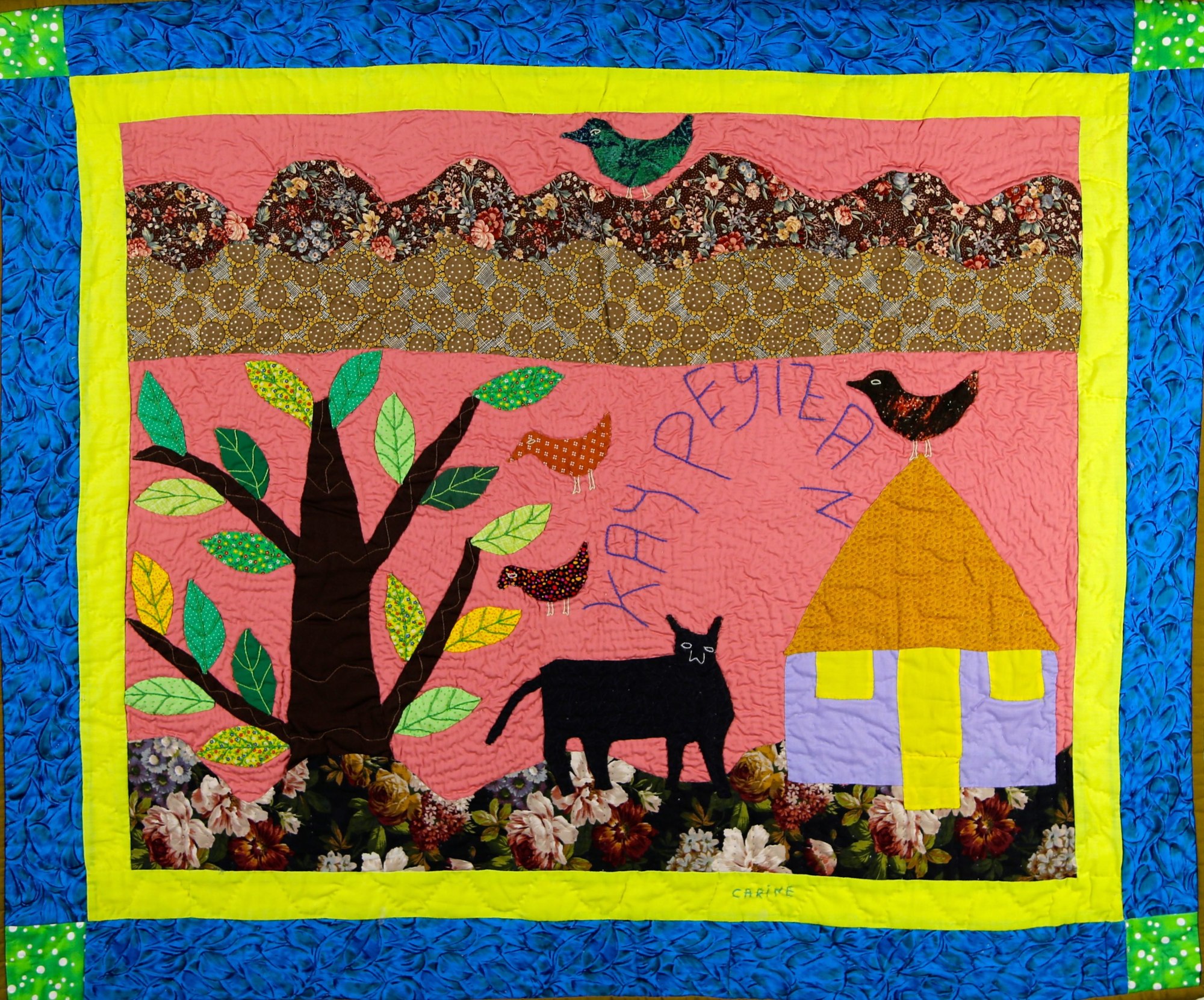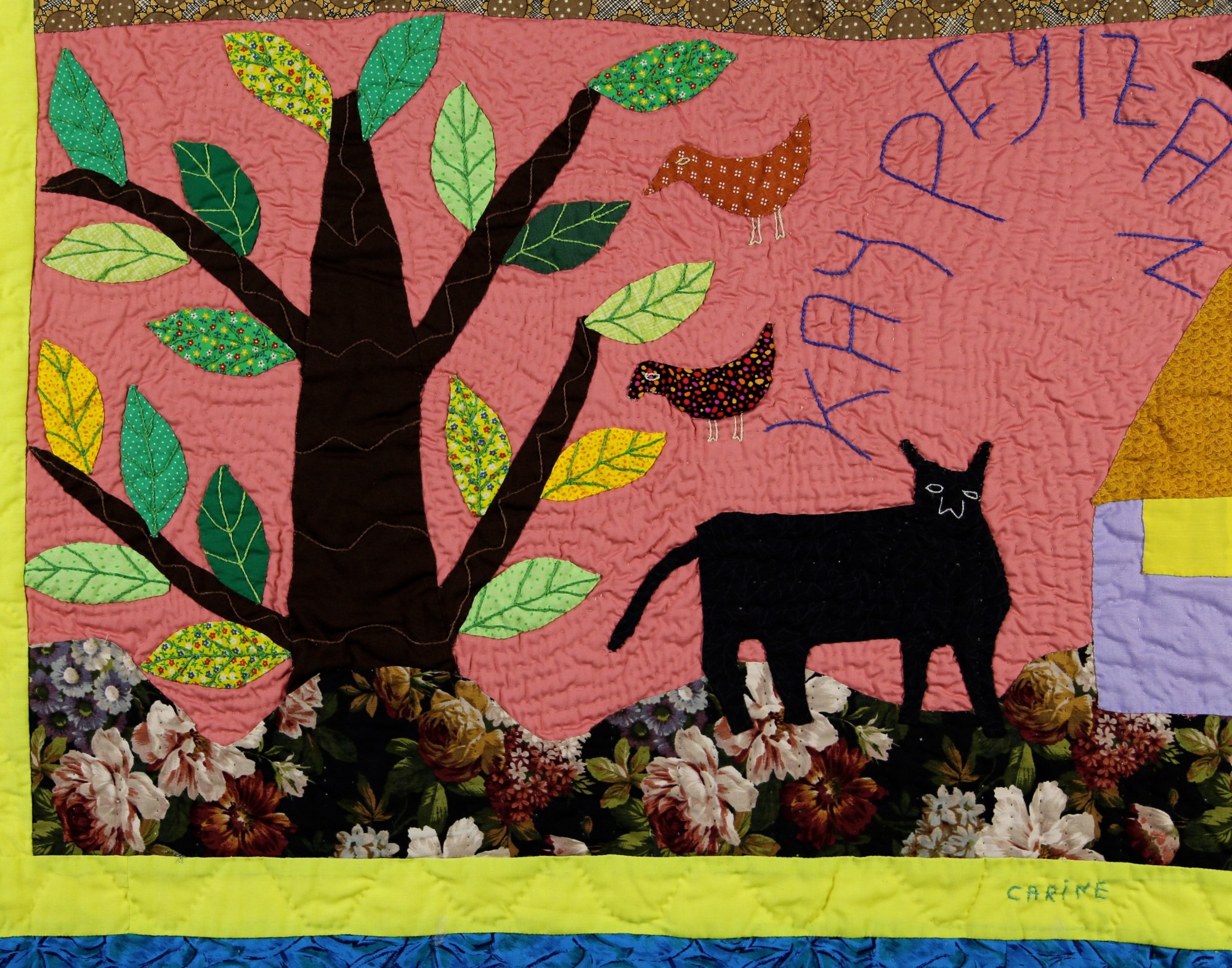 The charms of country life are beautifully captured in this exquisitely stitched quilt by artist Carine Charles. Hand appliquéd, quilted and embroidered on pieced cottons. Sleeve on reverse for hanging. Complementary copy of Patience To Raise the Sun included with your purchase.