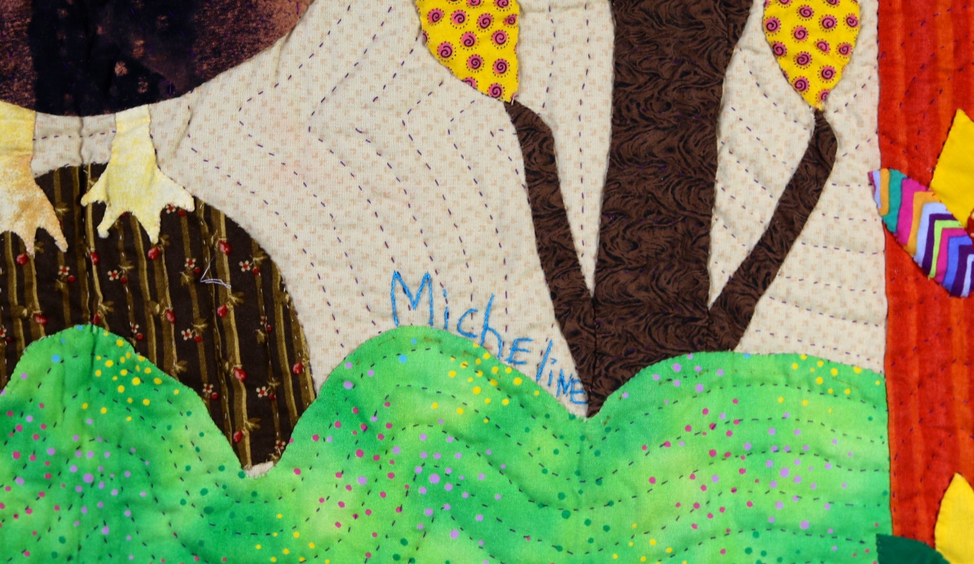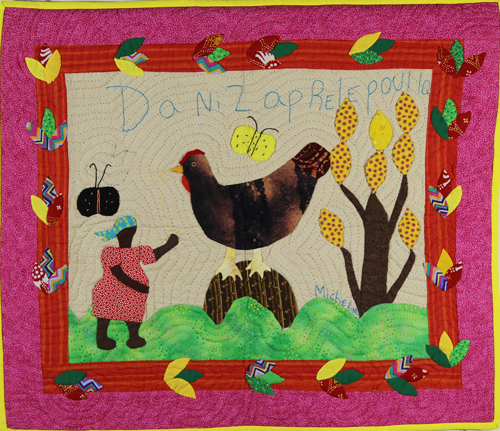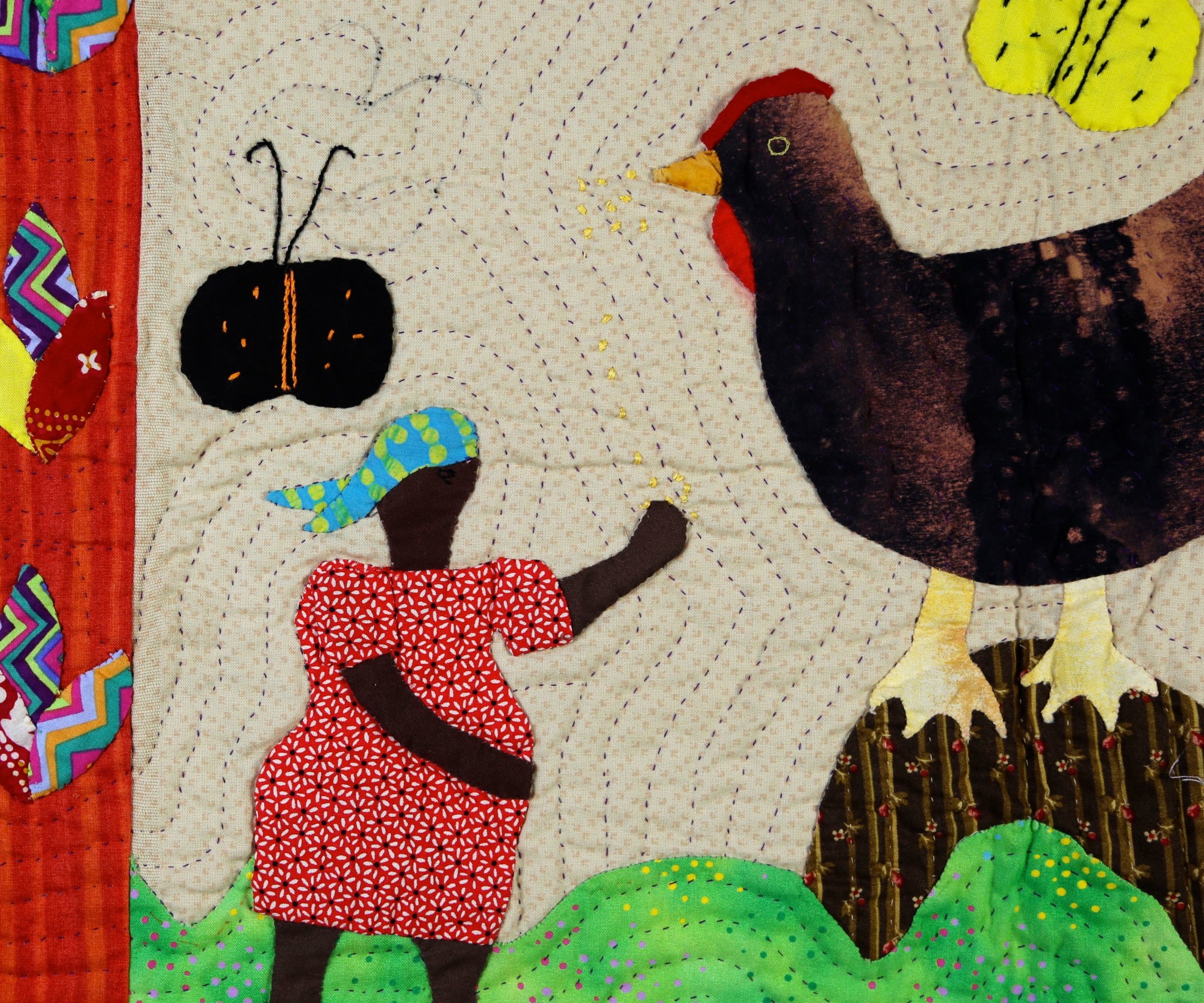 If the size of the chicken in this delightful quilt is any indication, this hen is a cherished part of the family! Hand appliquéd, quilted and embroidered on pieced cottons. Sleeve on reverse for hanging. Complementary copy of Patience To Raise the Sun included with your purchase.