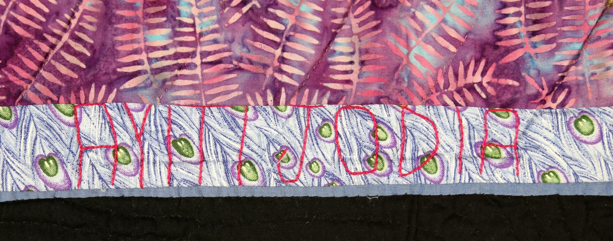 Hand appliquéd, quilted and embroidered on pieced cottons. Sleeve on reverse for hanging. Complementary copy of Patience To Raise the Sun included with your purchase.