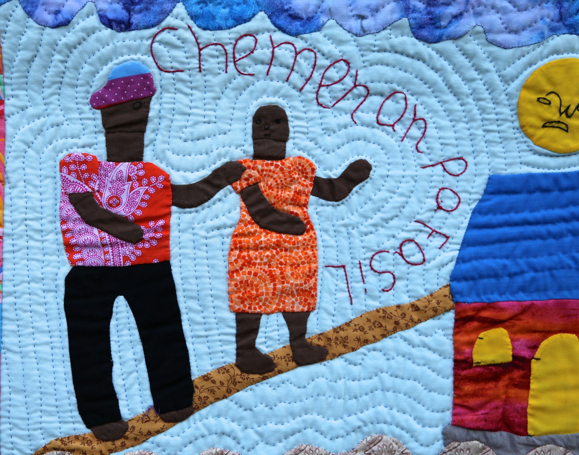 Hand appliquéd, quilted and embroidered on pieced cottons. Sleeve on reverse for hanging. Complementary copy of Patience To Raise the Sun included with your purchase.