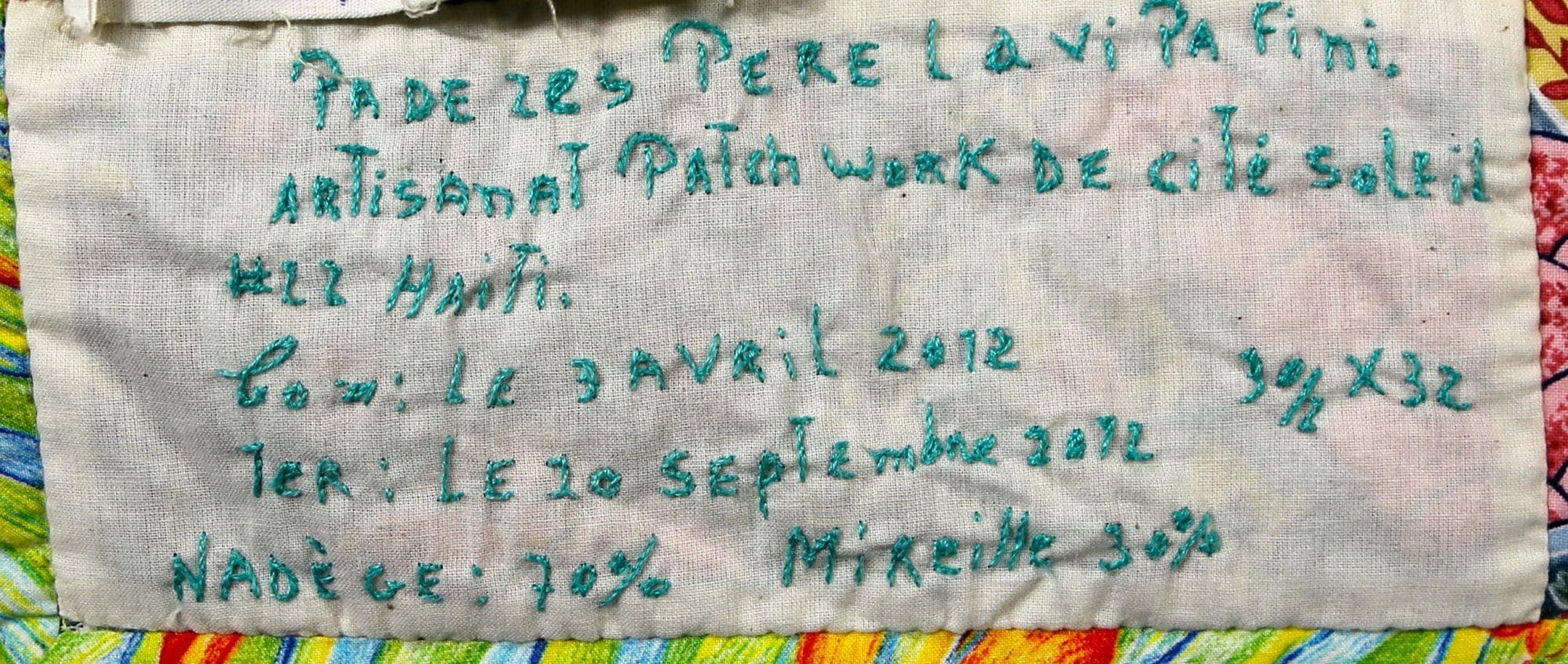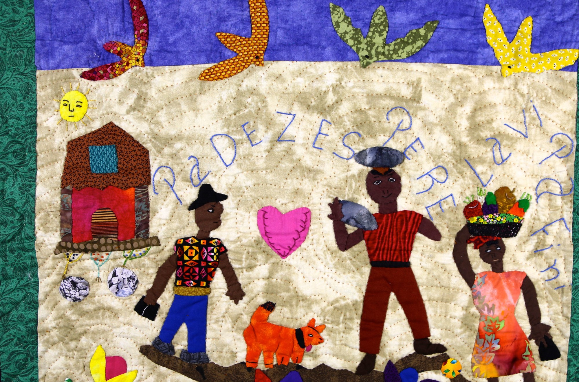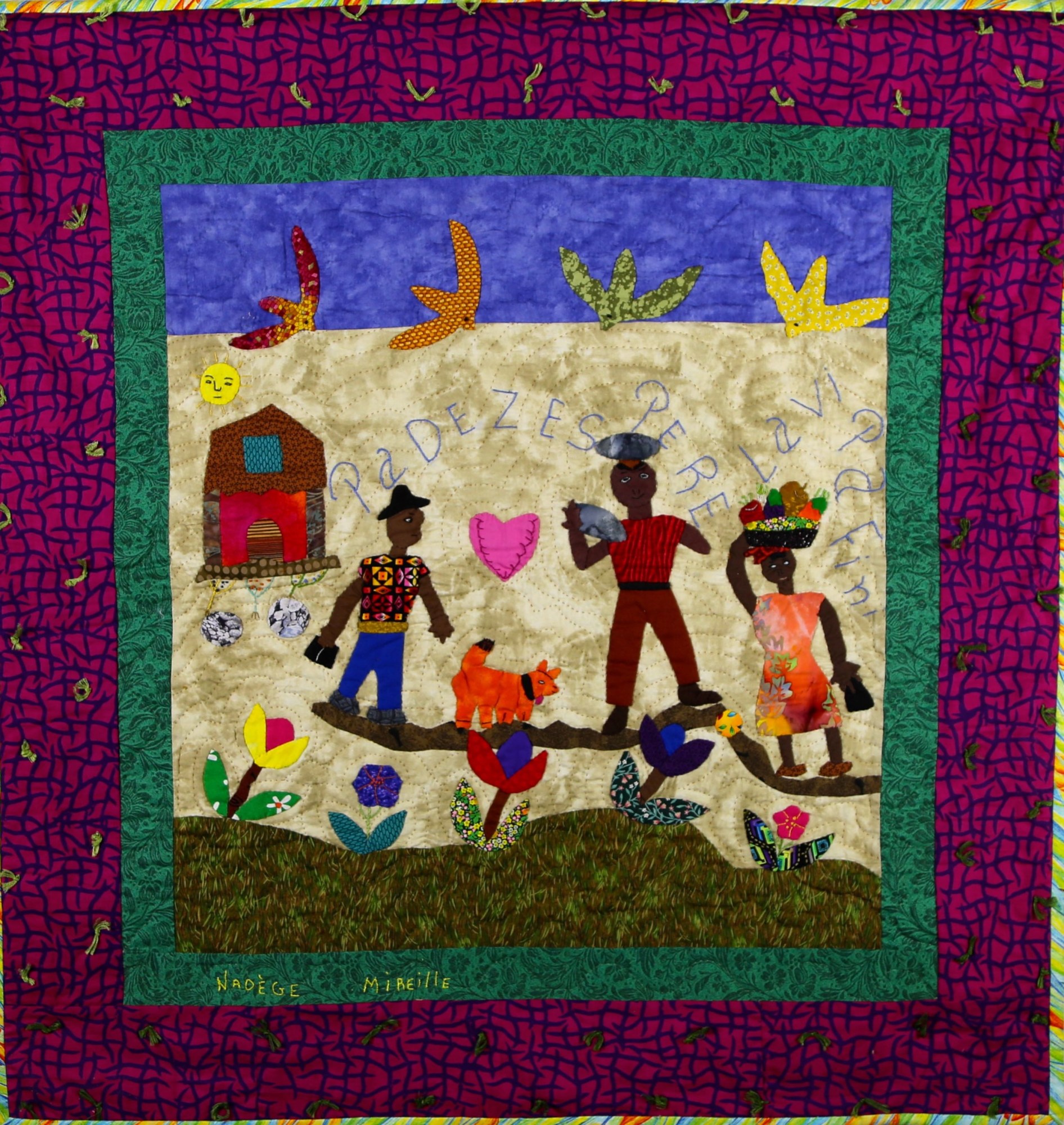 This colorful, charming story quilt reminds us of the endurance of the Haitian people and the hope that sustains them through difficult times. A good reminder to us all!