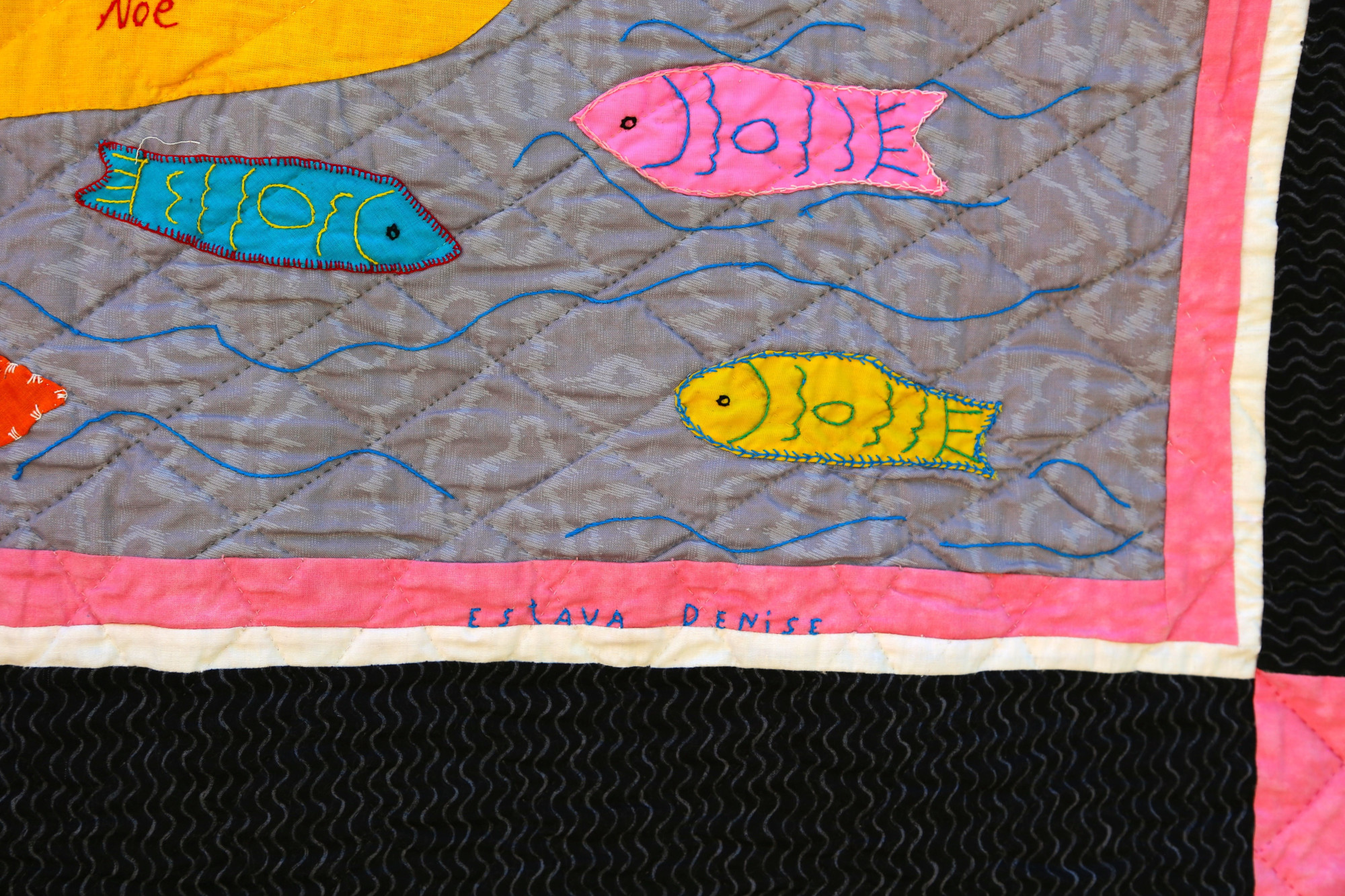The story of Noah and the arc is charmingly depicted, and would make a delightful focal point for a child's room. This quilt was featured in the touring exhibition 'Patience To Raise the Sun'.