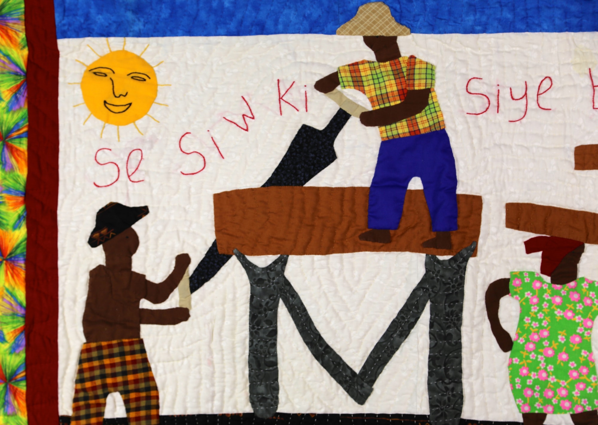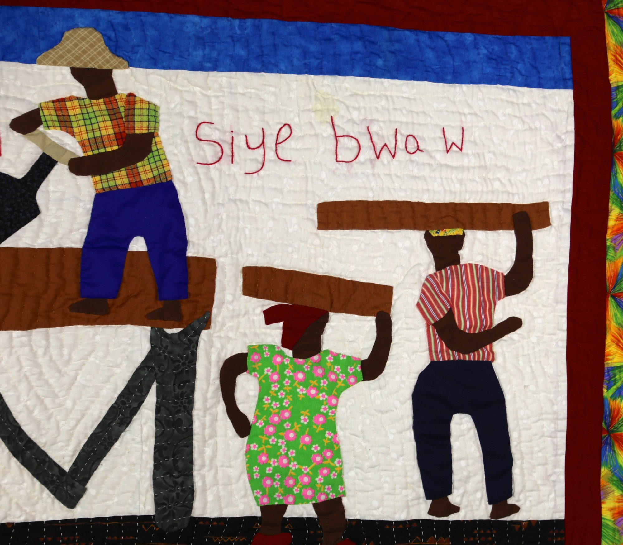 The whole village works together to cut wood in this charming depiction of life in Haiti. This quilt was featured in a special exhibition at the 2017 Houston International Quilt Festival.
