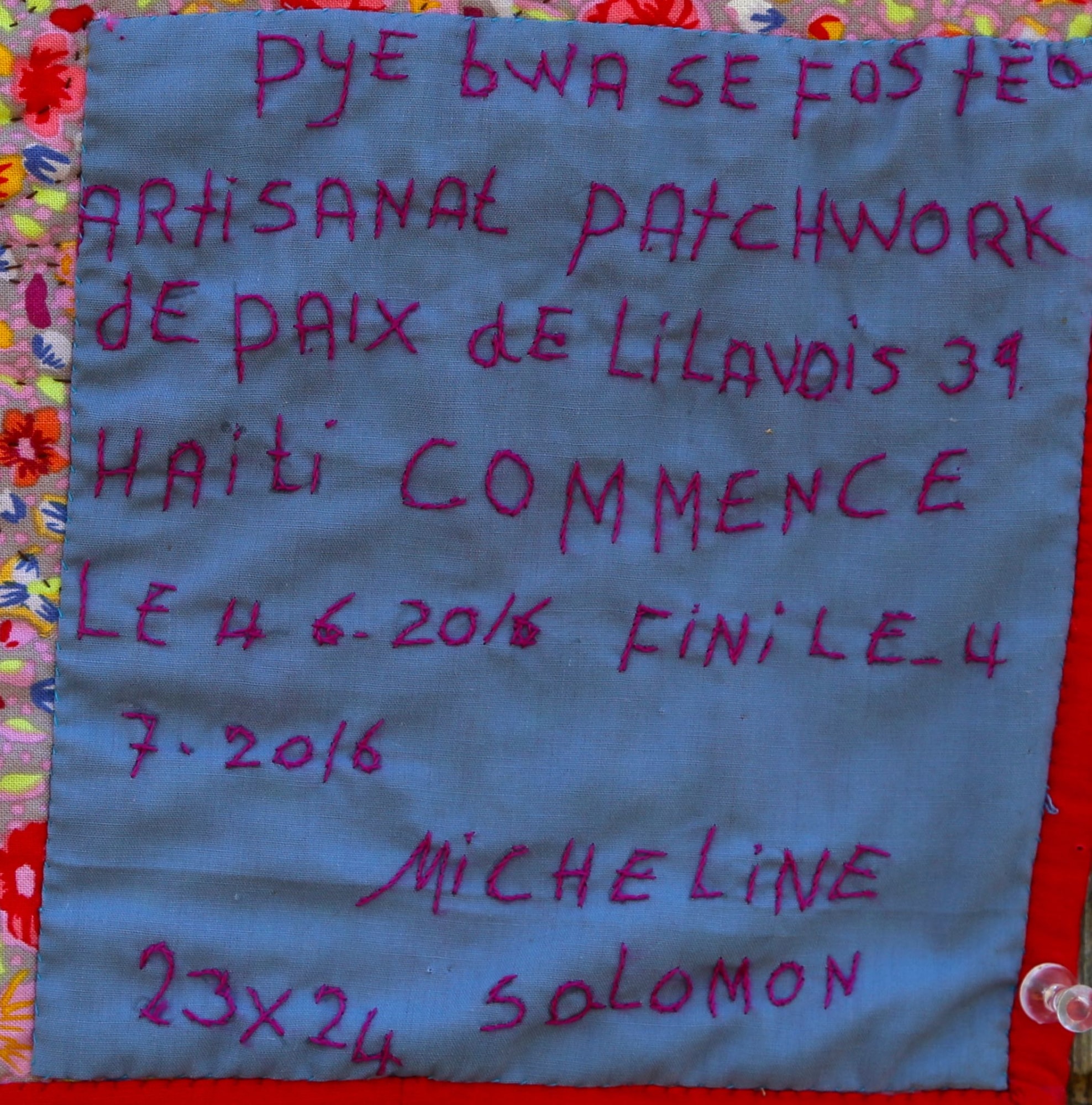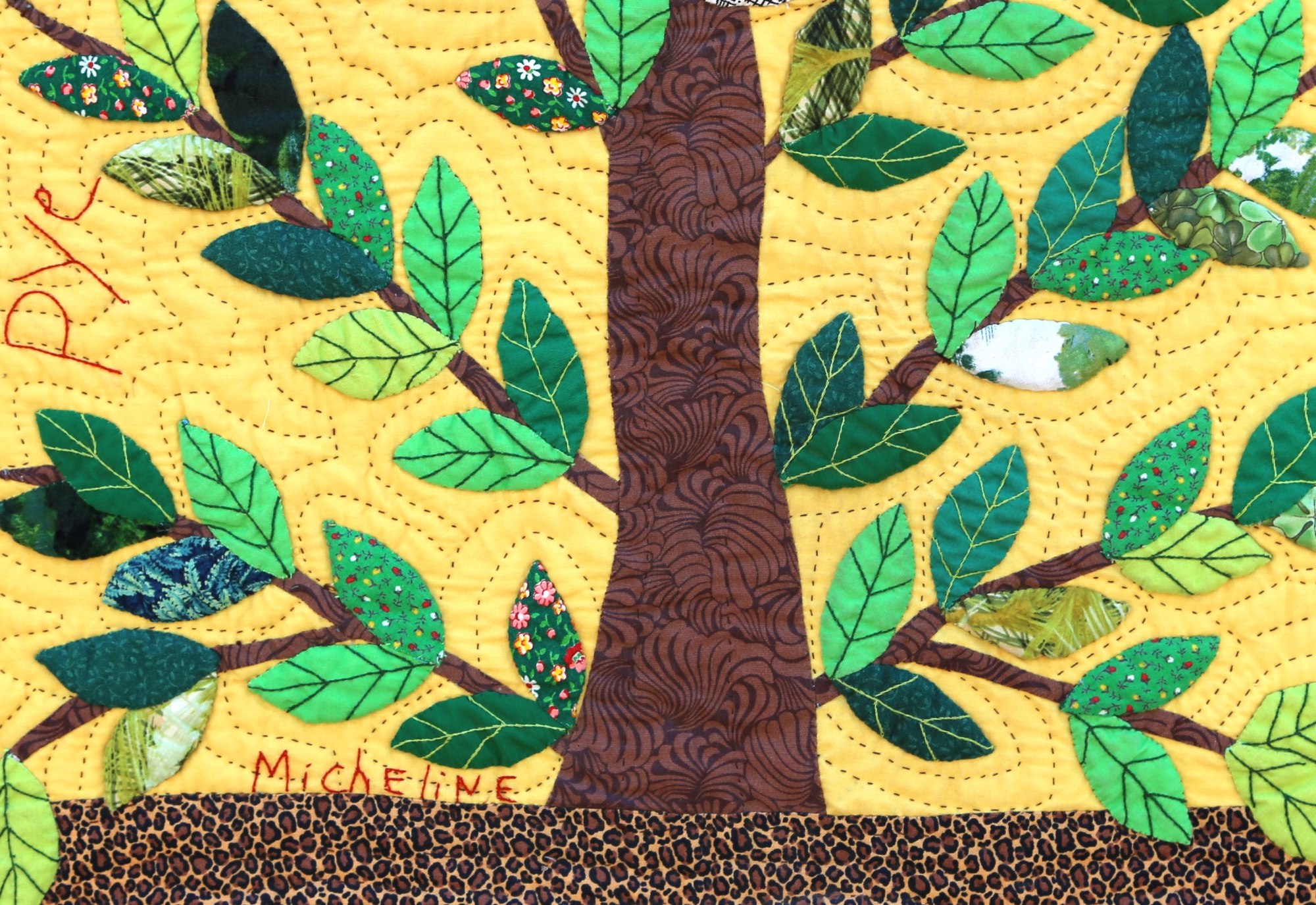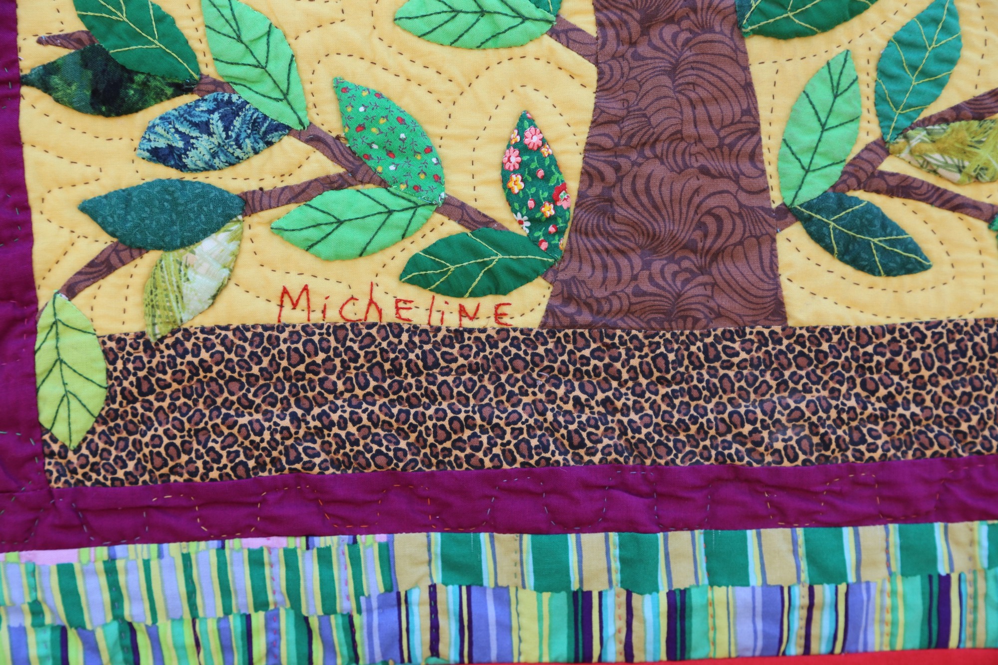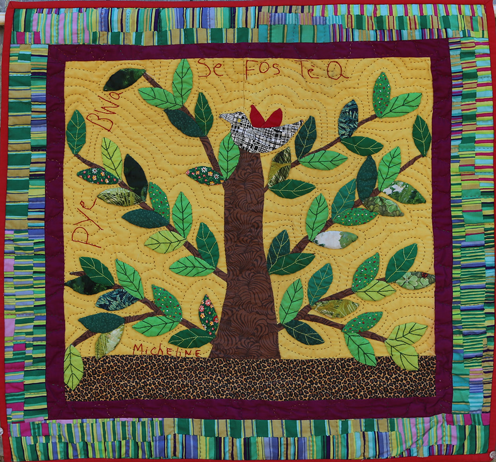 Haiti has many initiatives to reforest their country. Here artist Micheline Salomon creates a beautiful, exquisitely stitched depiction of a revered tree of life.