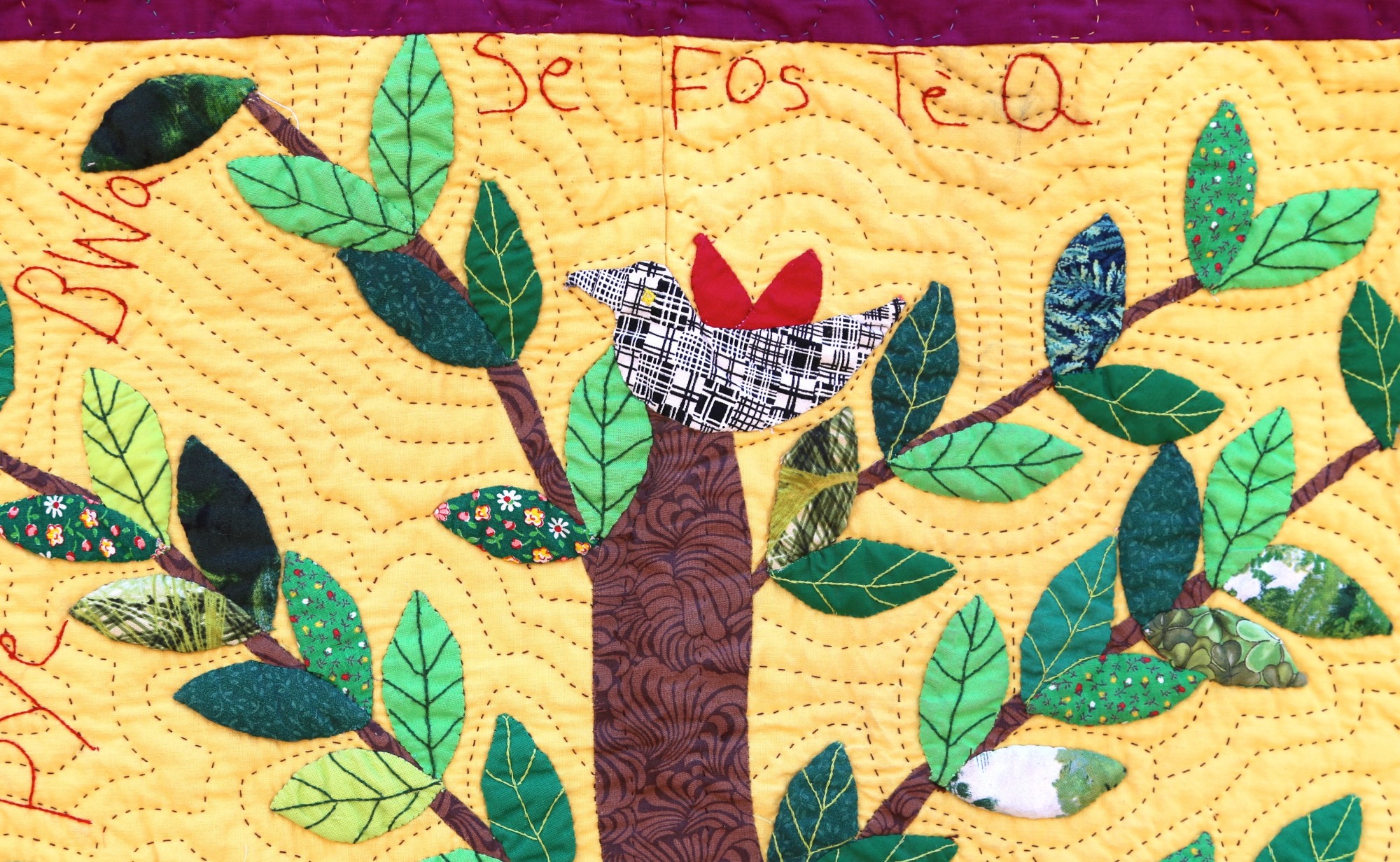 Haiti has many initiatives to reforest their country. Here artist Micheline Salomon creates a beautiful, exquisitely stitched depiction of a revered tree of life.