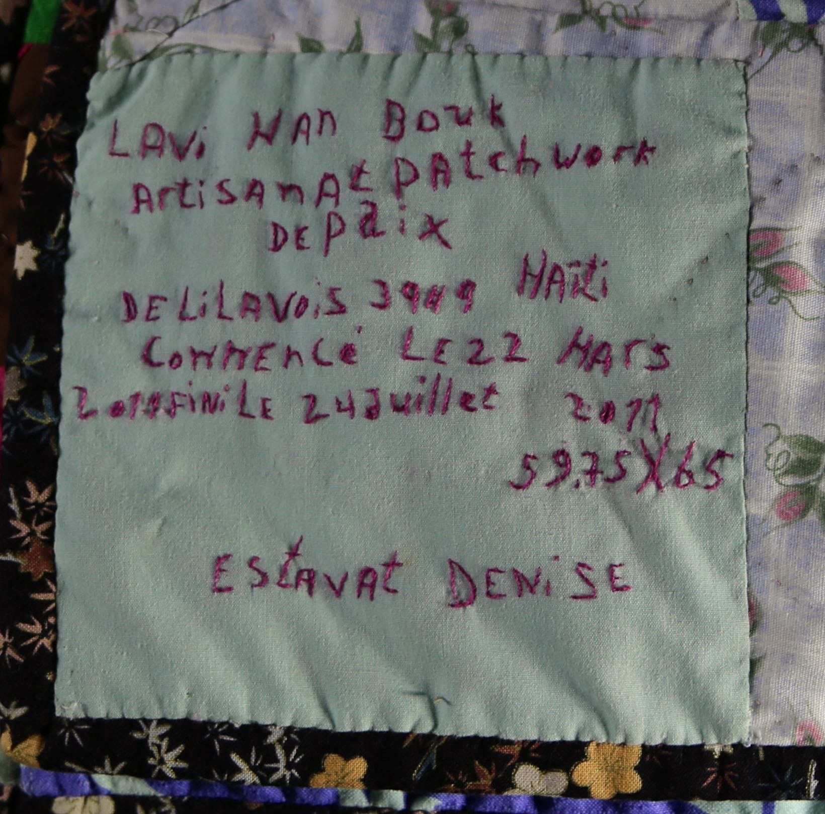 A striking composition showing village life that is filled with activity. People make their way to work in the early morning as the sun peaks over the mountain. Treadle-machine pieces of cotton pieces and scraps, with hand appliqué, embroidery, and hand quilting throughout. A copy of Patience To Raise the Sun exhibition catalogue included with purchase.