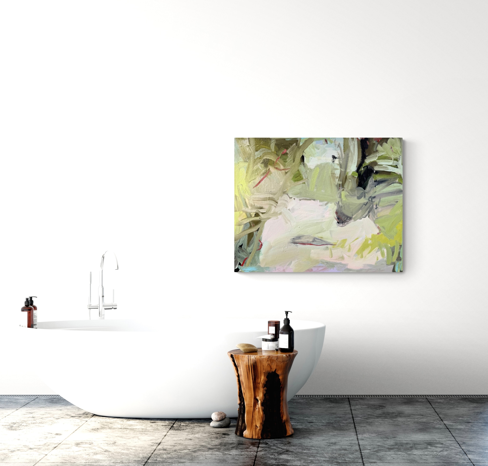 This artwork encapsulates the concept of a silver lining, capturing the subtle glimmer of light present in every circumstance. Executed in an abstract style, the piece unfolds with grace using delicate light oil colors, creating an appearance of ease and fluidity. The viewer's gaze is artfully directed towards a luminous opening in the upper portion of the canvas, suggesting the emergence of something fresh and radiant.