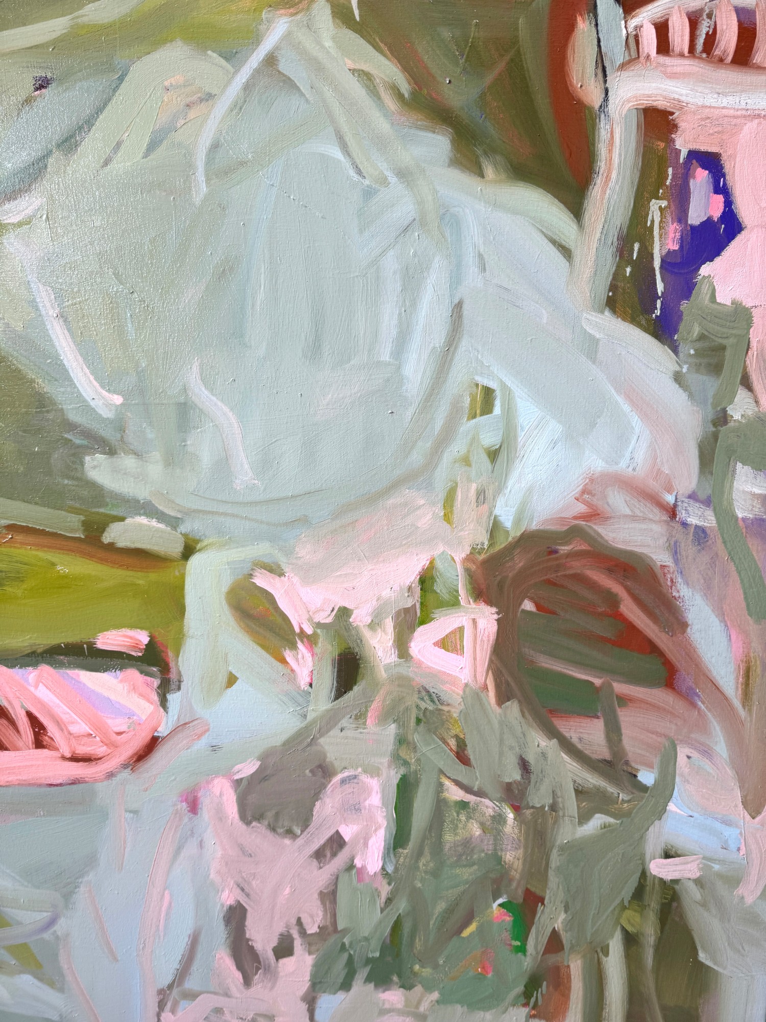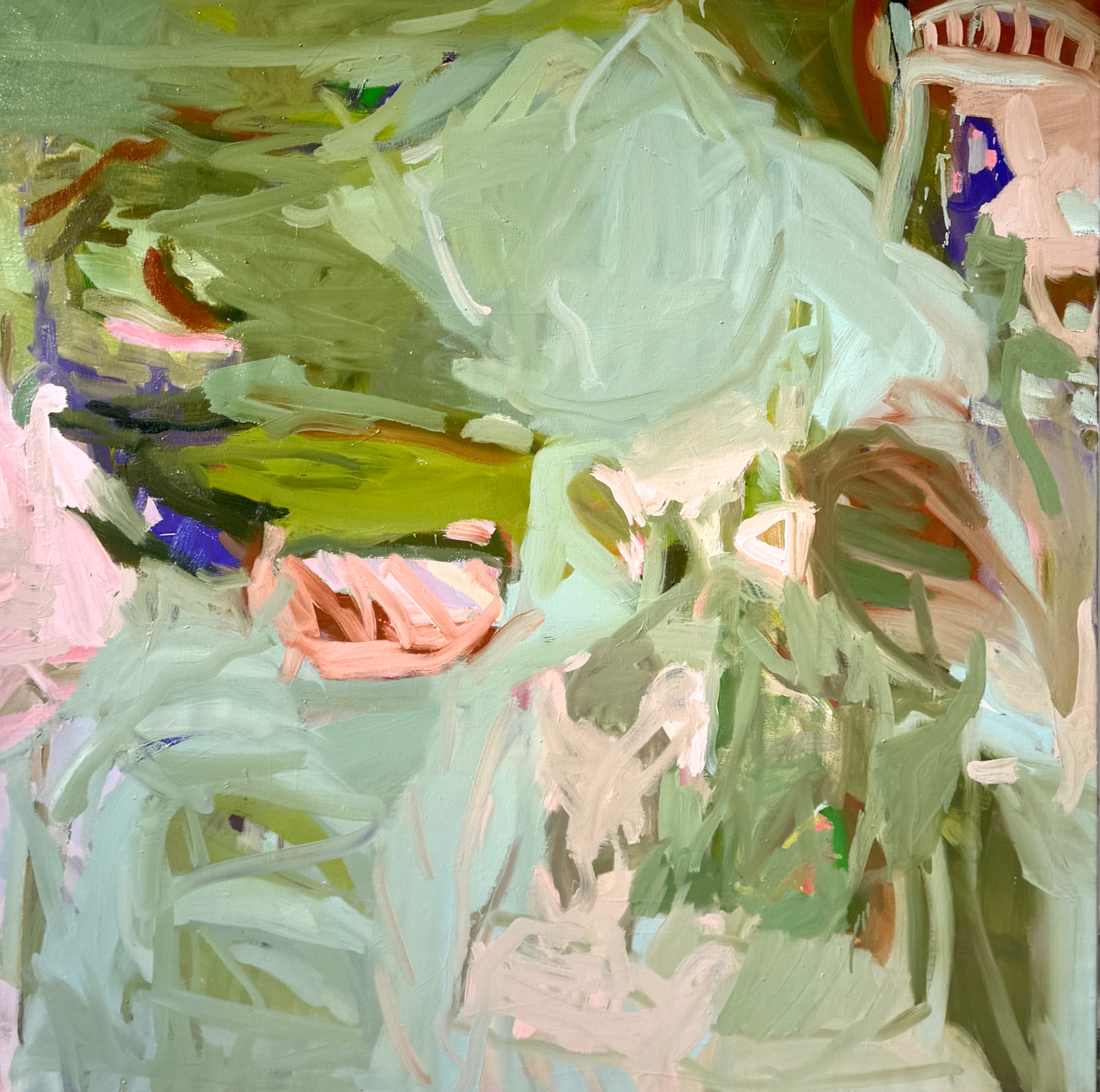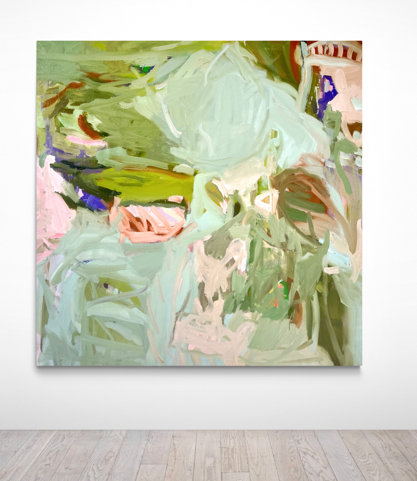 Delving into the profound notion of coming home, this abstract masterpiece invites contemplation on the essence of belonging, of finding oneself in the right place, and of establishing roots. The canvas is adorned with a harmonious blend of light green hues seamlessly interwoven with earthy tones, subtly alluding to the comforting symbols of a house and human movement. This artwork encapsulates the intricate journey of returning to a place of significance.