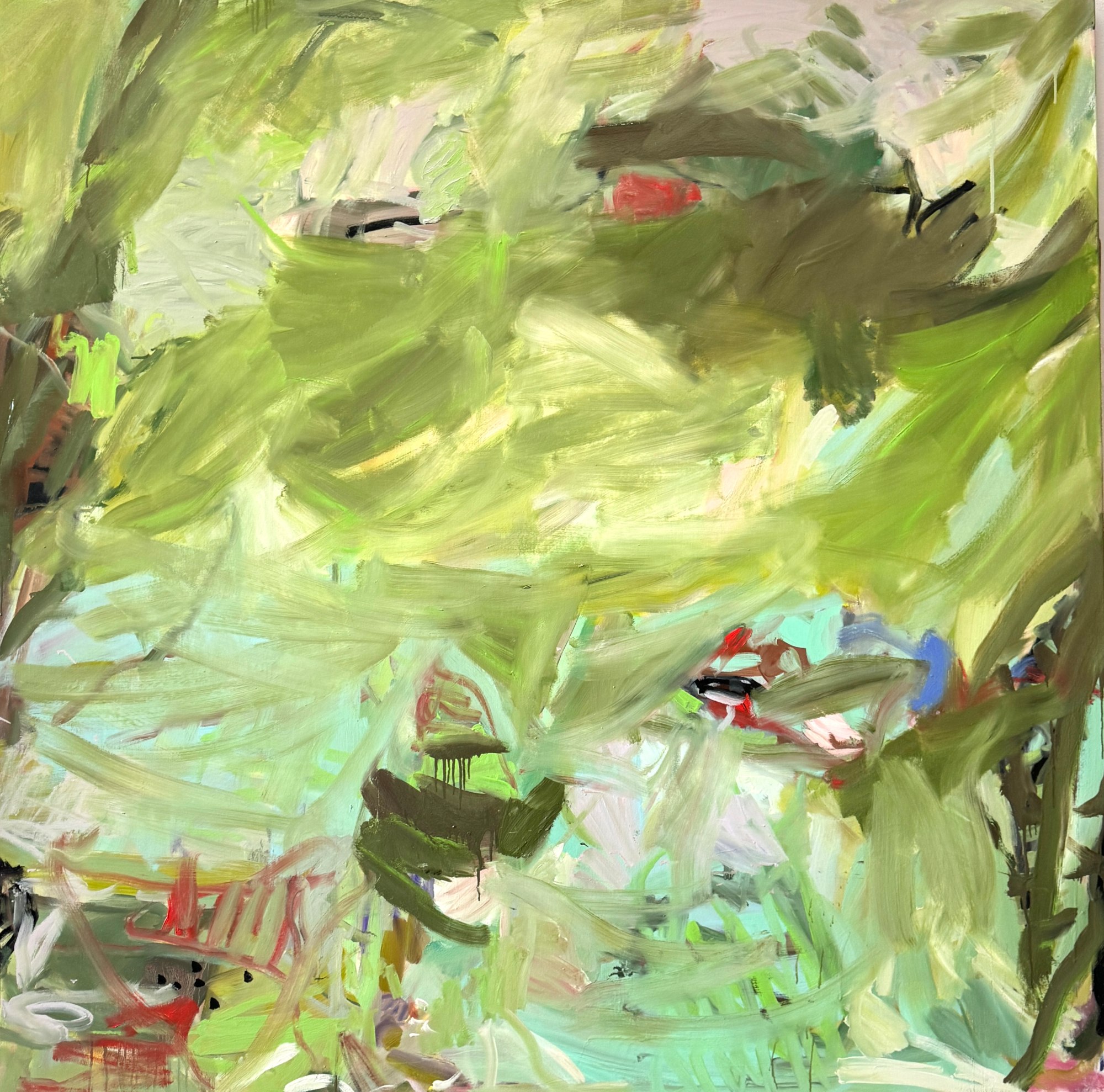The canvas unfolds with undulating waves of green, stretching towards the infinite horizon, revealing both tranquil expanses and untamed realms. Executed with dynamic strokes of oil colors, the painting resonates with excitement, infusing it with a rich interplay of texture and depth, mirroring the diverse landscapes within the metaphorical forest of our lives.