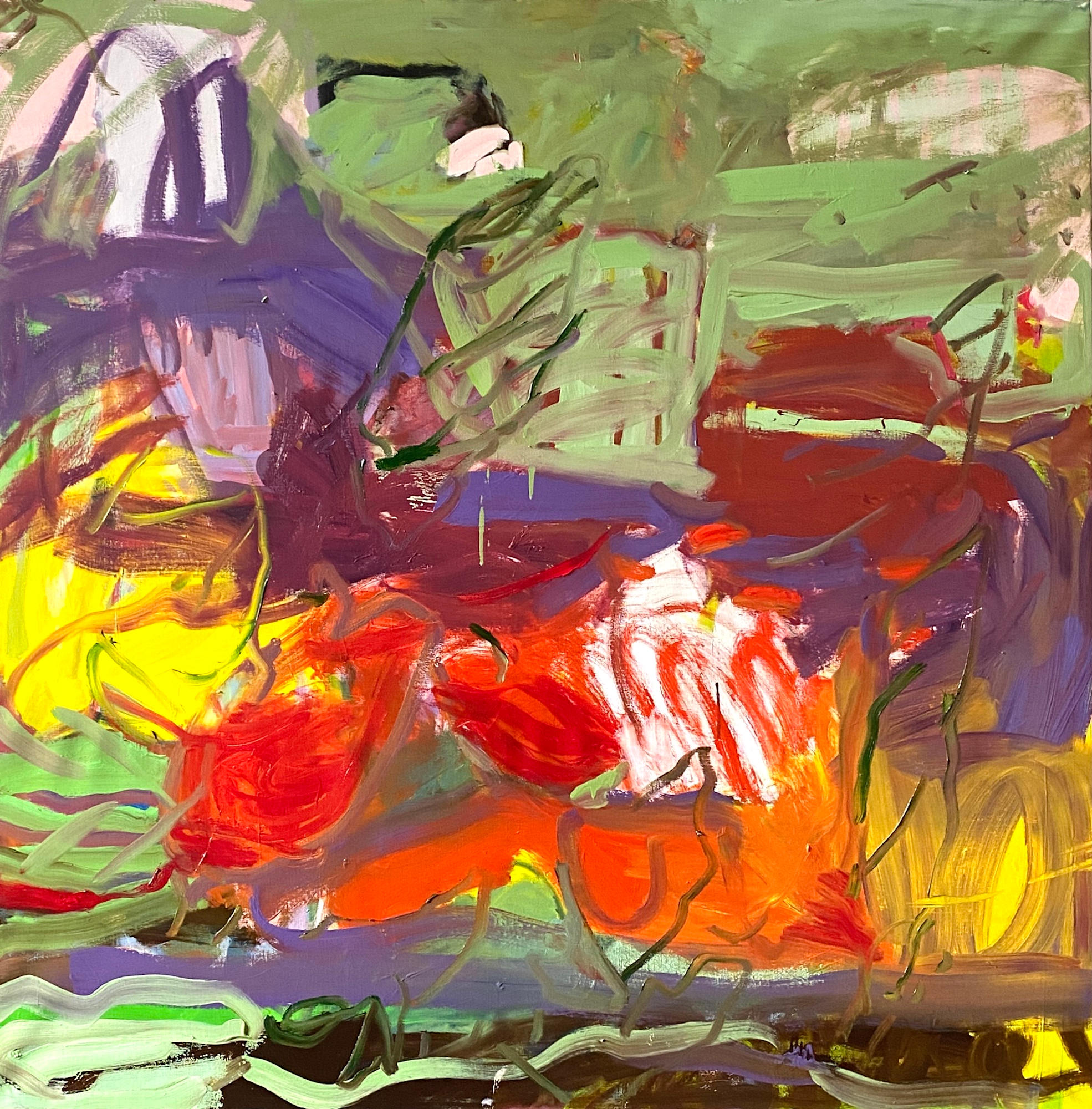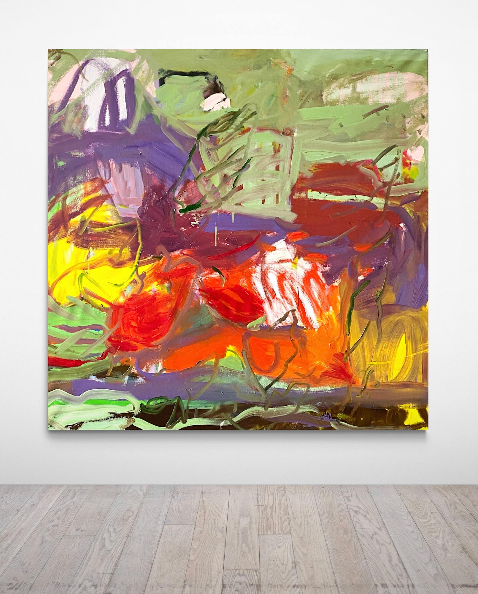 True to its title, this abstract masterpiece encapsulates the pinnacle of summer. It vividly conveys the full expansion and blossoming of nature, providing a captivating visual representation of the abundance and warmth characteristic of the season.- The oil paints add texture and depths to this painting.