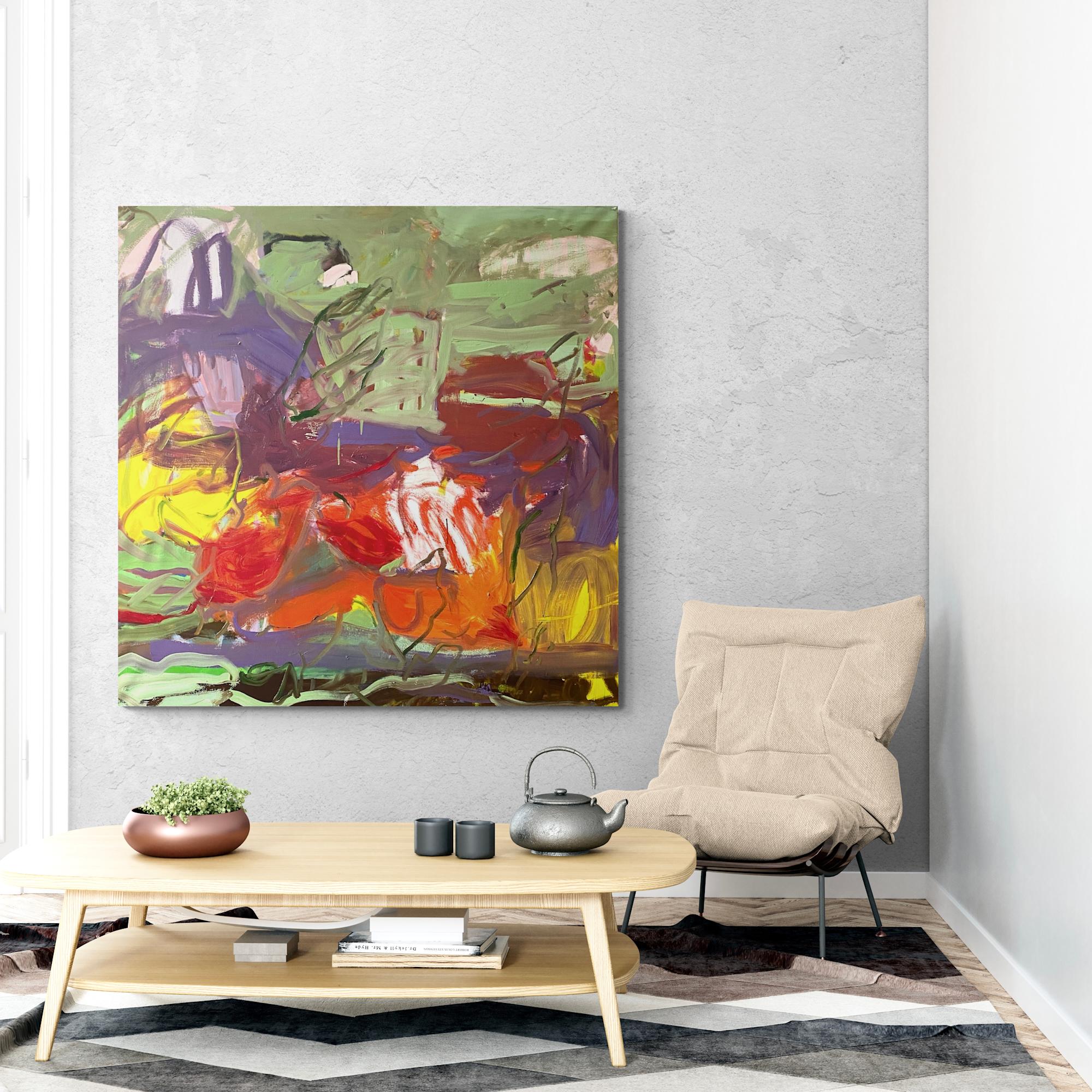 True to its title, this abstract masterpiece encapsulates the pinnacle of summer. It vividly conveys the full expansion and blossoming of nature, providing a captivating visual representation of the abundance and warmth characteristic of the season.- The oil paints add texture and depths to this painting.