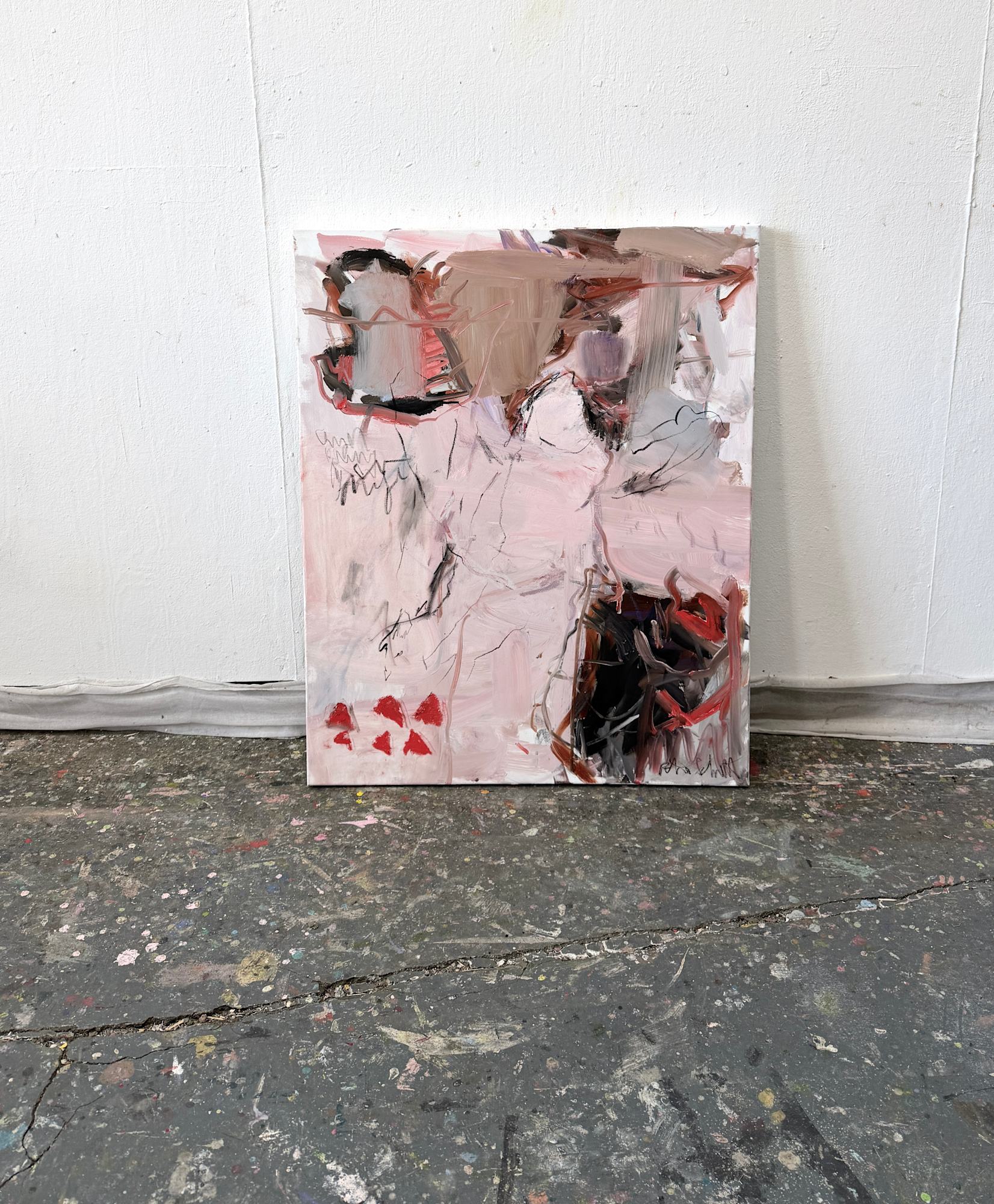 In this painting, with its soft rosé and pink hues, an angel is faintly visible. Usually, angels remain hidden, unseen by us. This artwork serves as a reminder that angels exist in our lives, often unnoticed.