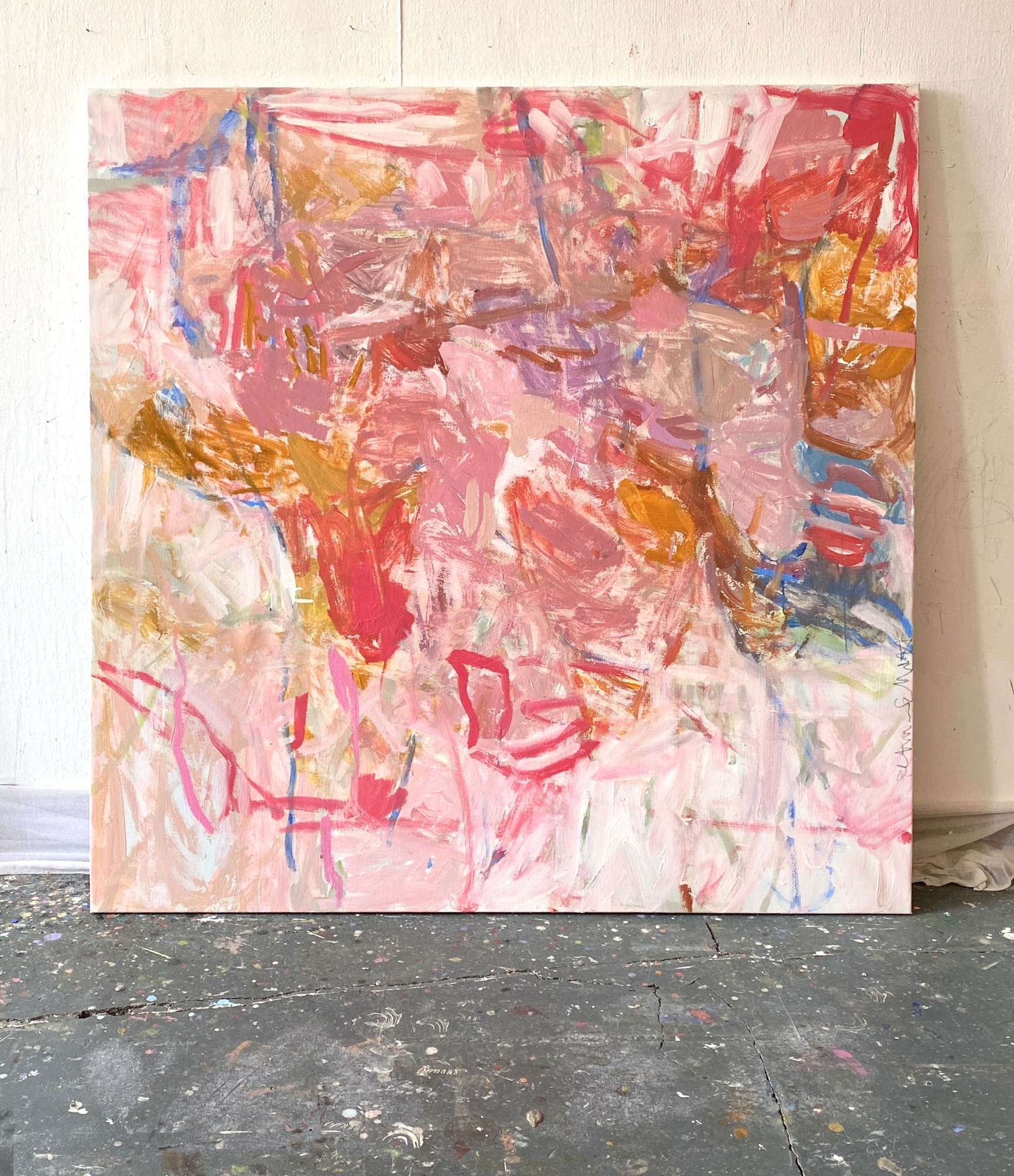 Titled 'The Goddess Wants It Wild,' this artwork draws inspiration from a rich tapestry of ancient traditions where goddesses, symbolic of various virtues, are engaged in uninhibited and wild dances. Notably, in Indian tradition, Saraswati, the goddess of wisdom and art, is also revered as the goddess of dance. Within this piece, the artist envisions her as a potent female force, manifested through delicate shades of soft rosé and bold red hues gracefully dispersed across the canvas in a fervent, untamed dance.