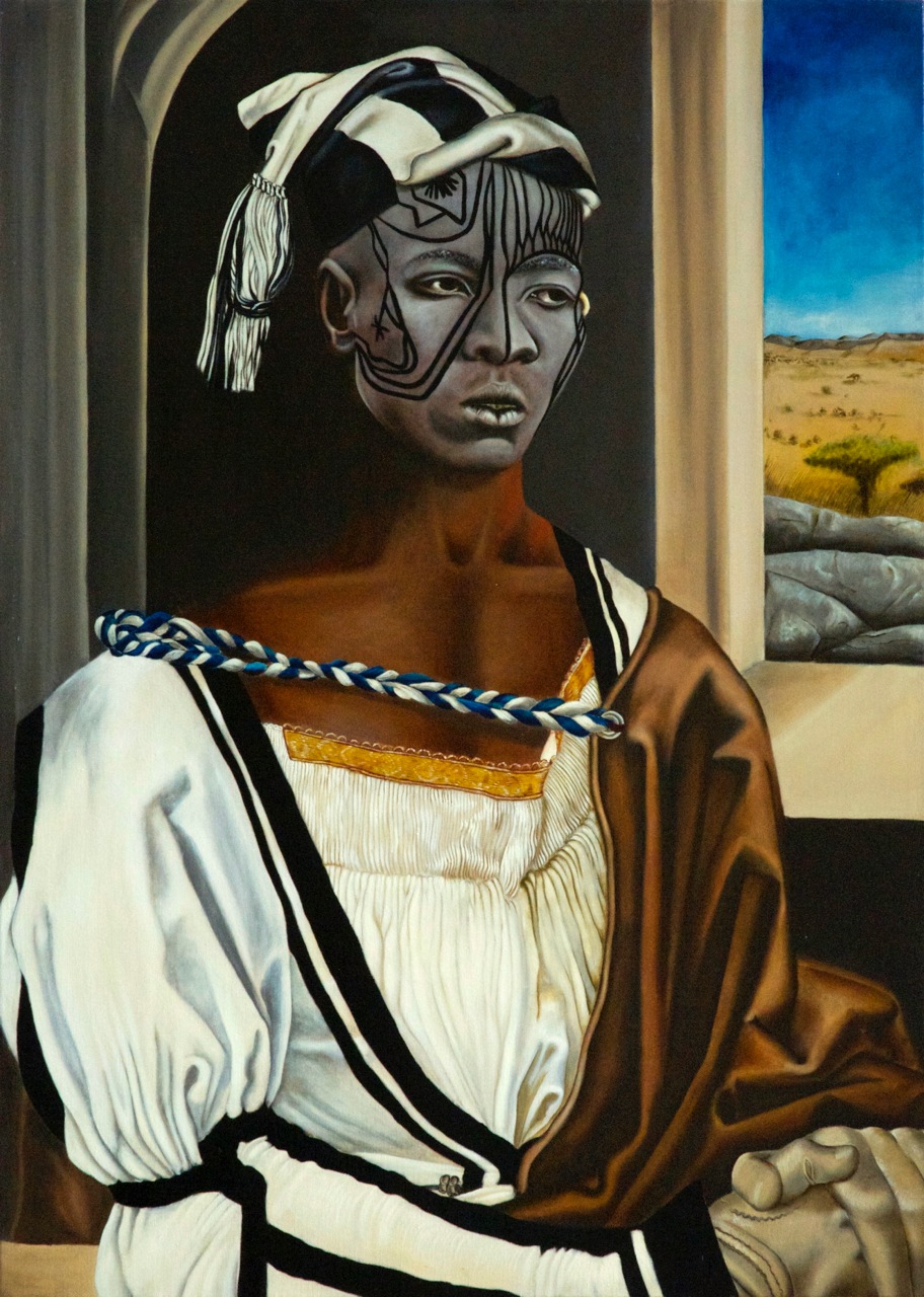 D'après l'autoportrait d'Albrecht Dürer. Combiné avec le visage d'un nouba de Kau prise par Leni