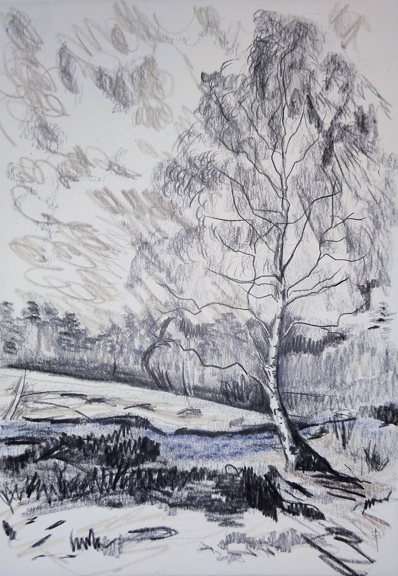 Preliminary sketch in graphite and watercolour pencil