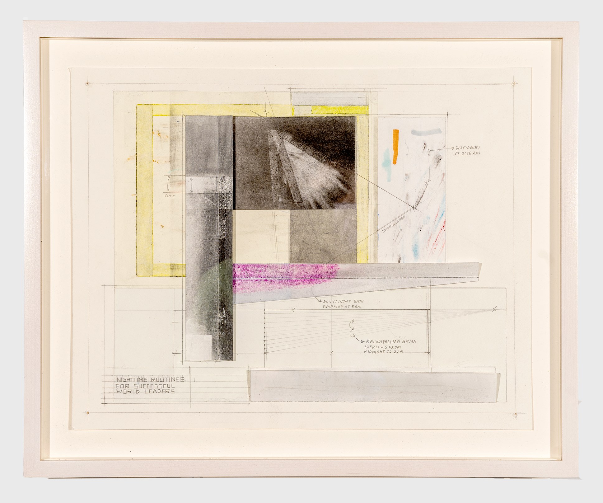 graphite, colored pencils, pastels, pens, collage paper, crayon