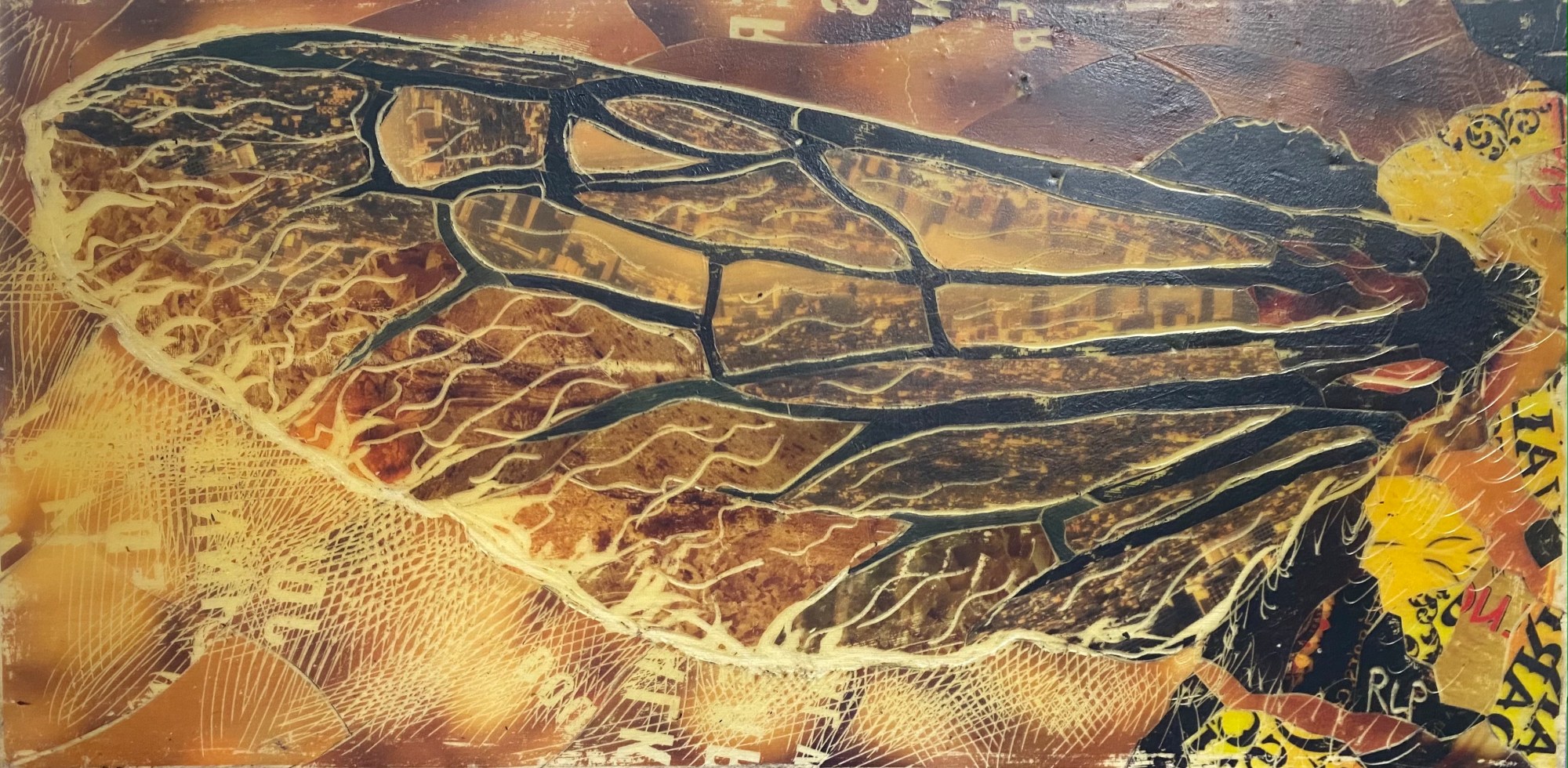 Randy's work is the result of a unique encaustic process where he transfers ink from magazines onto a thin layer of beeswax (Encaustic medium).