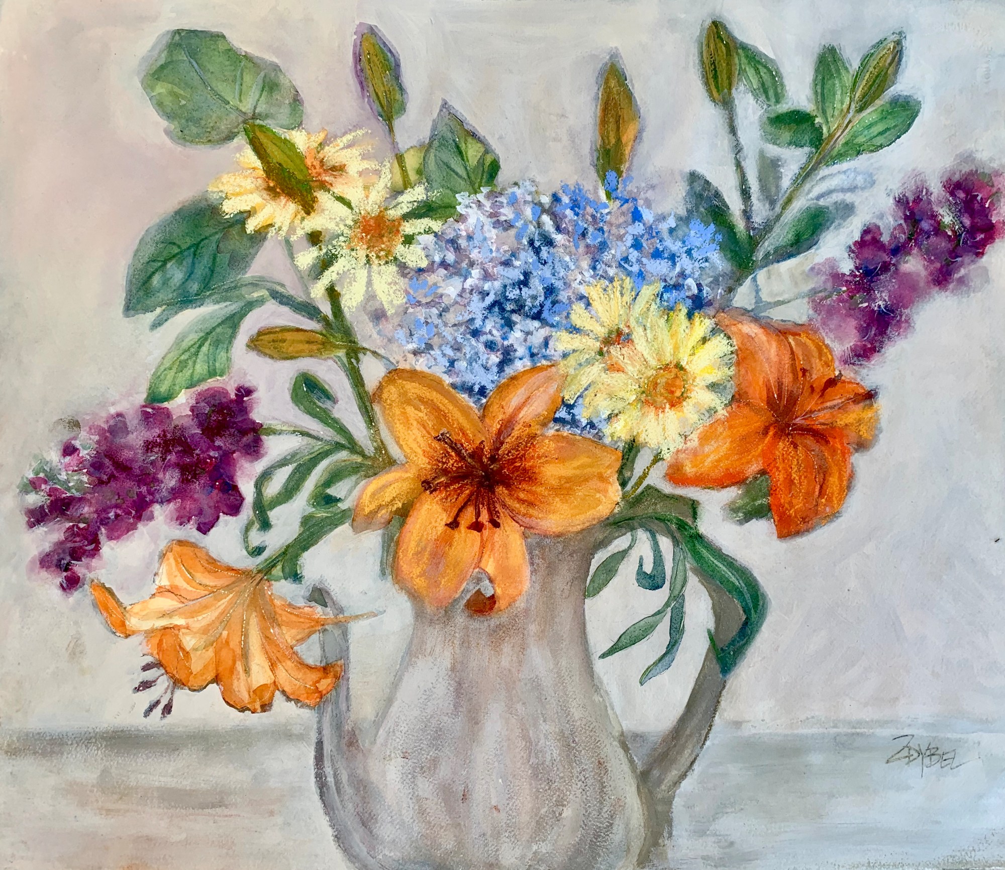 Watercolor, acrylic, and pastel floral on Arches Paper