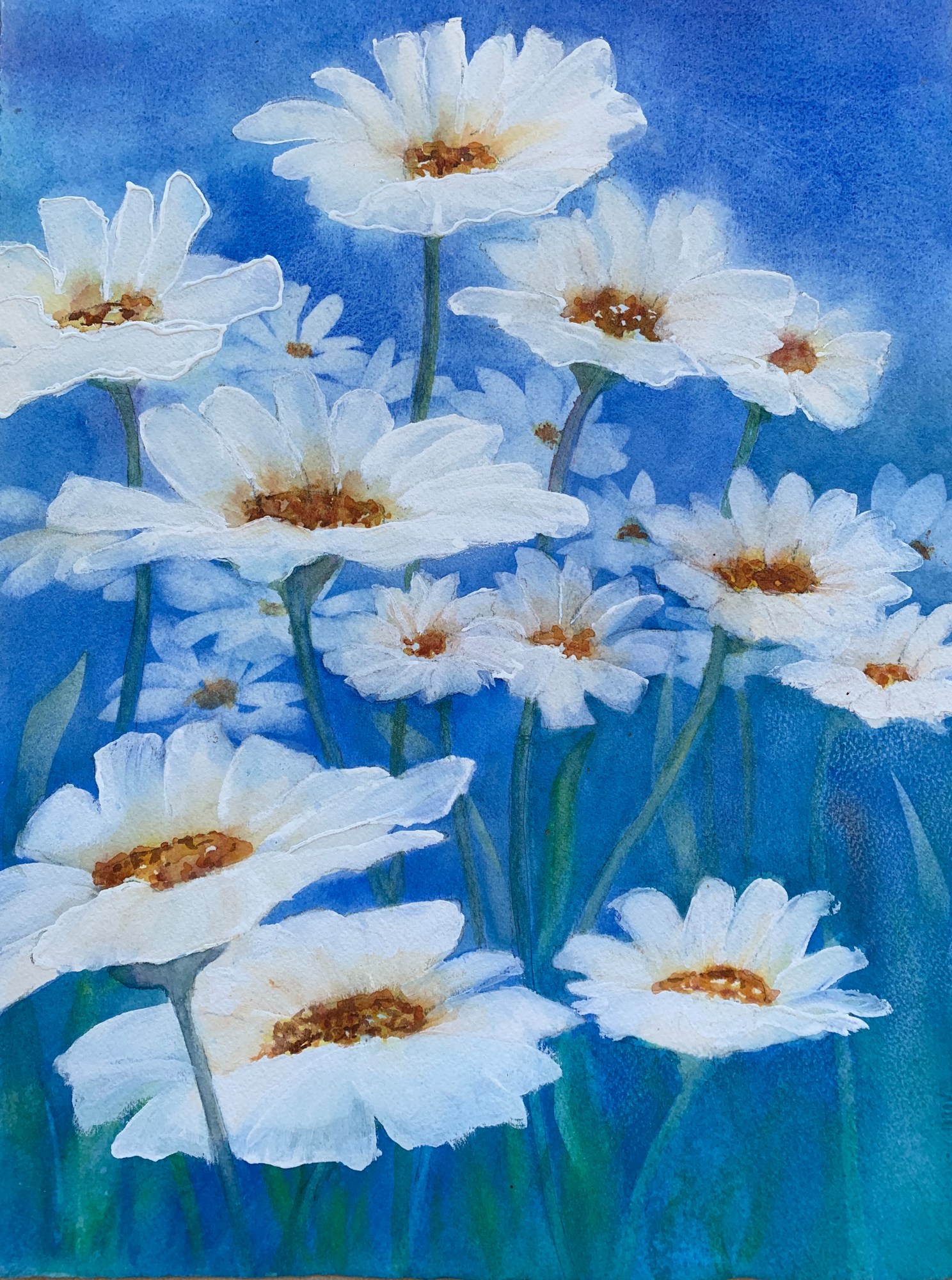 Daisies in blue and green