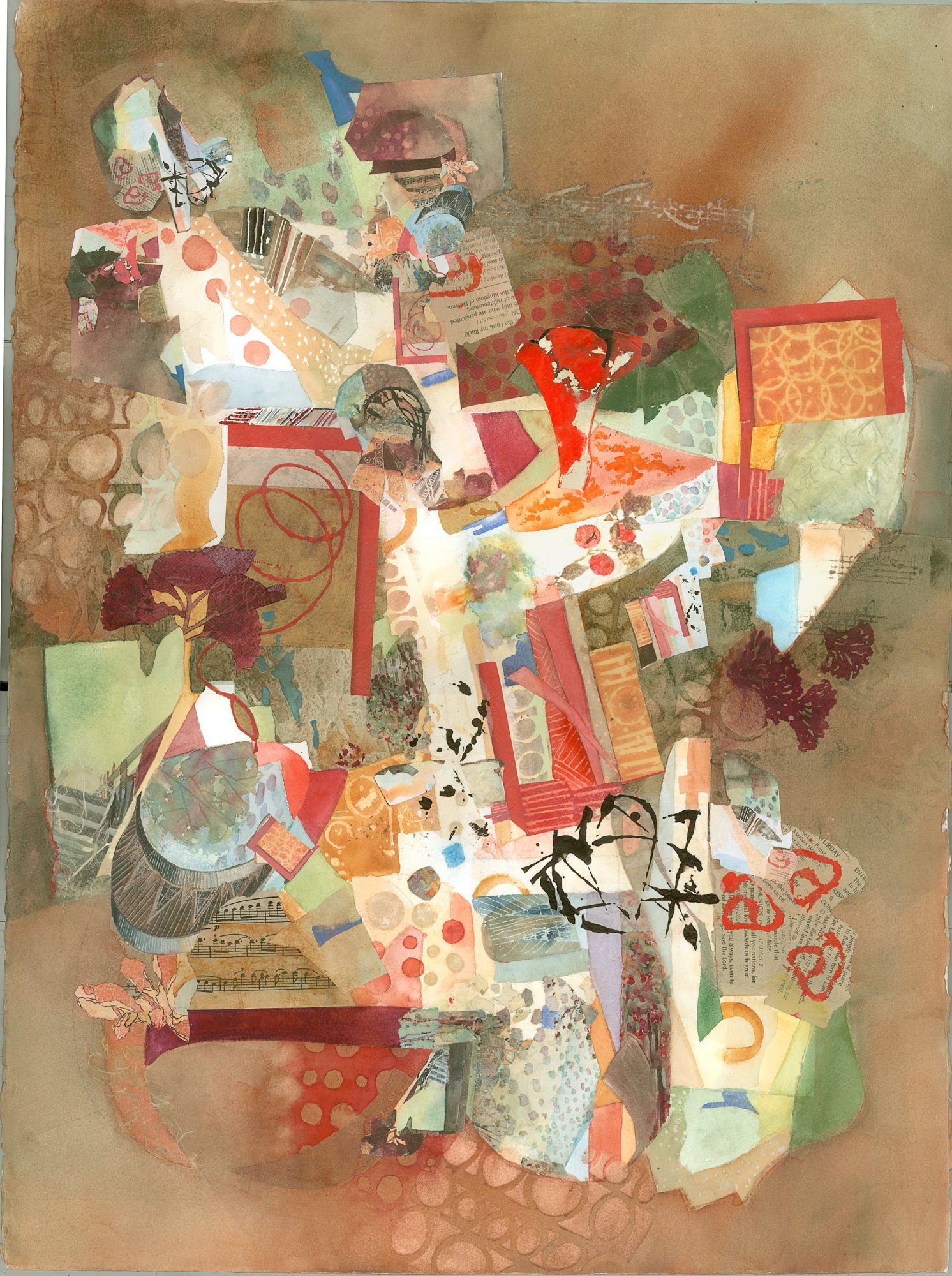 This mixed media piece has watercolor foundations and layers integrating the collage and acrylic on paper. This painting would pair well as a duo with