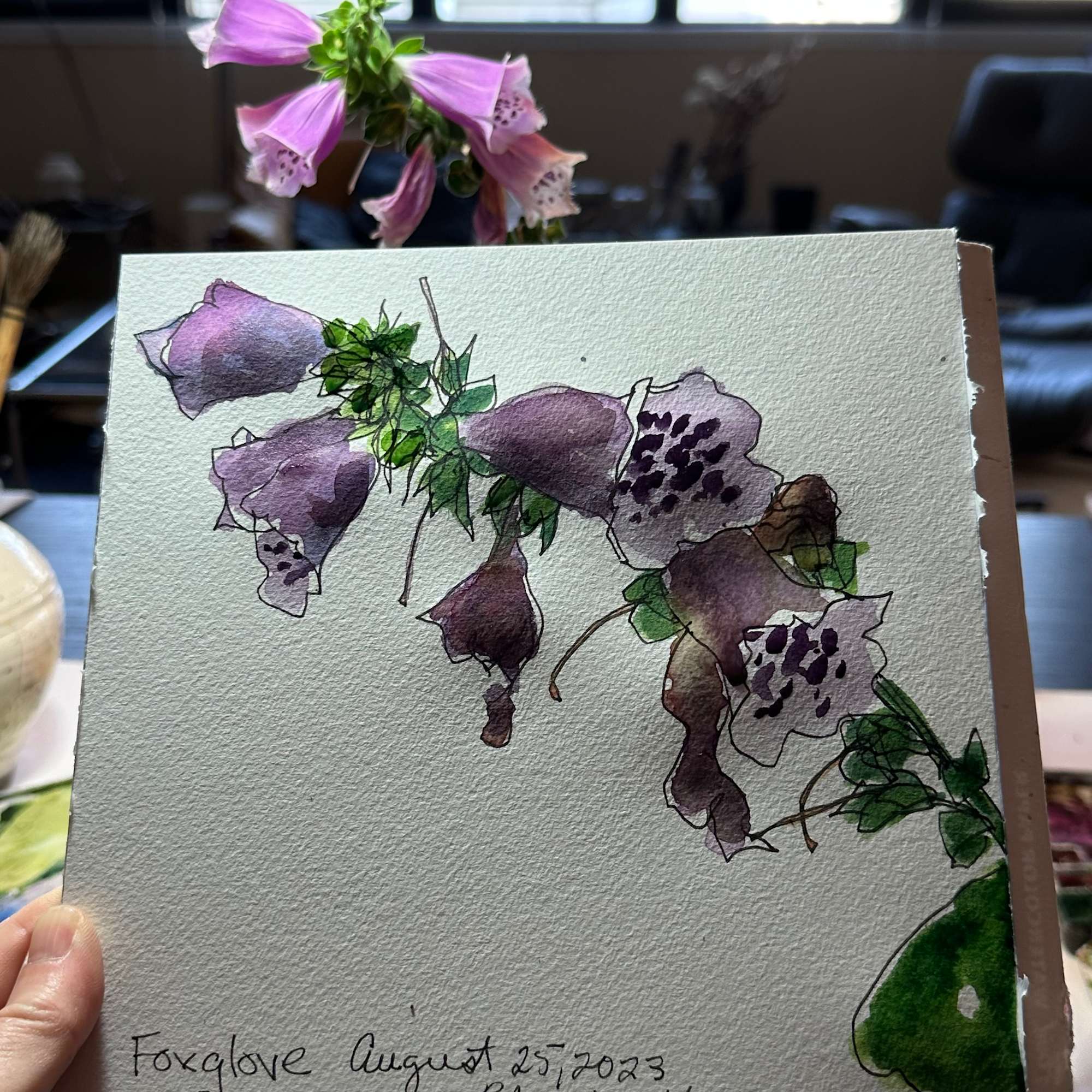 • Ink and watercolor on cold press paper mounted onto cradled wood panel