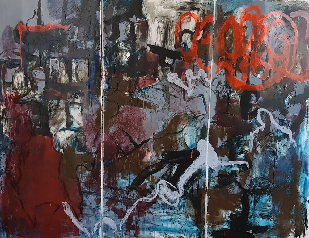 This work on thee panels was inspired by a visit to Addis Ababa and the history and energy of the city and the tragedies that have occurred in its historic main square that also houses the Red Terror's Martyrs Museum.