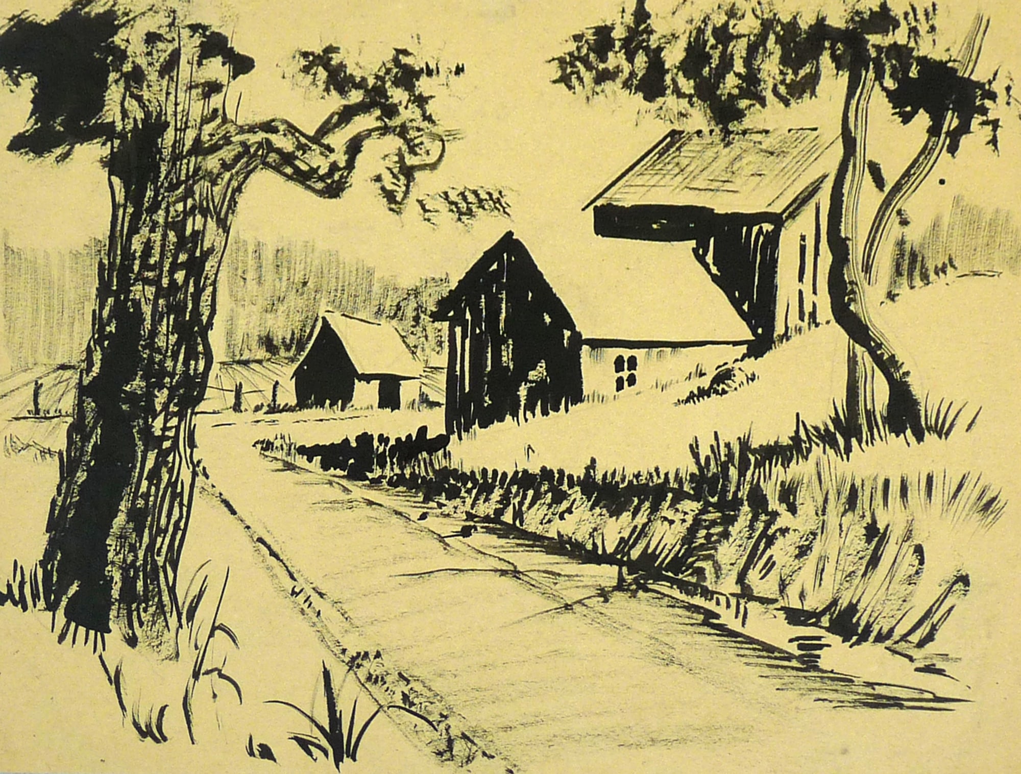 - Collections: Drawings: Ink: Buildings: Barns, Drawings: Ink: Farmscapes, Drawings: Ink: Roads, Drawings: Ink: Trees