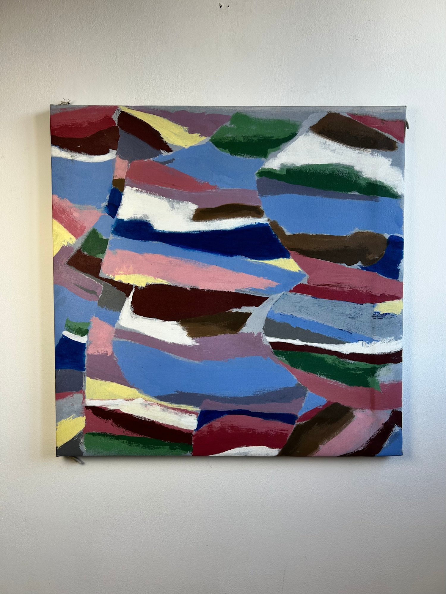 This composition from 2011 unfolds as a rhythmic interplay of curved bands and chromatic layers. The horizontal flow of colour - ranging from cool blues and greens to warm ochres and pinks - captures Gamberini’s search for balance between movement and structure within abstraction.