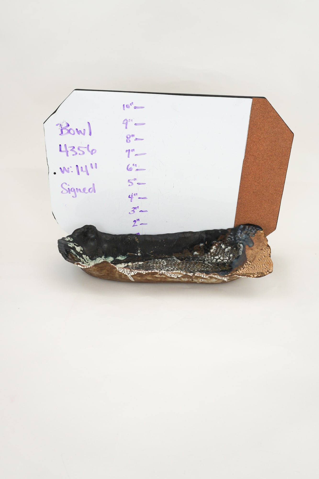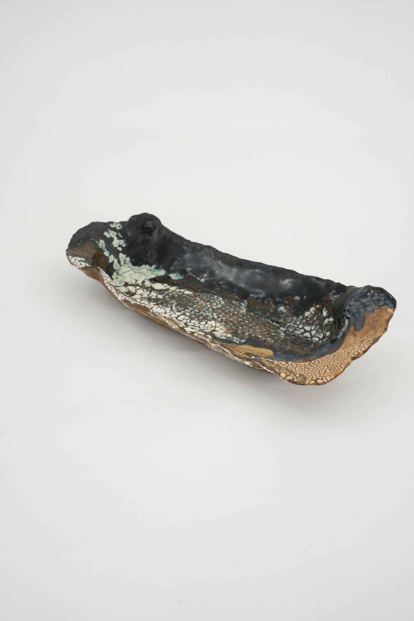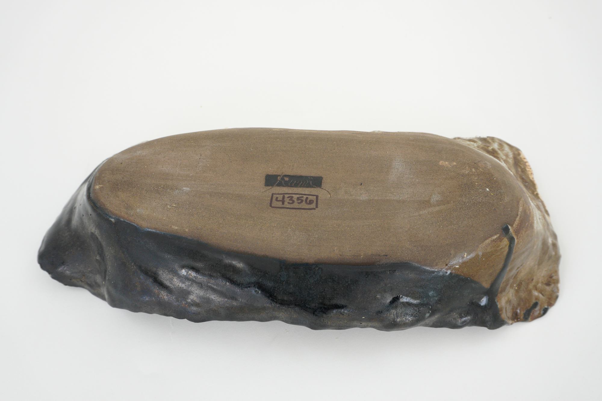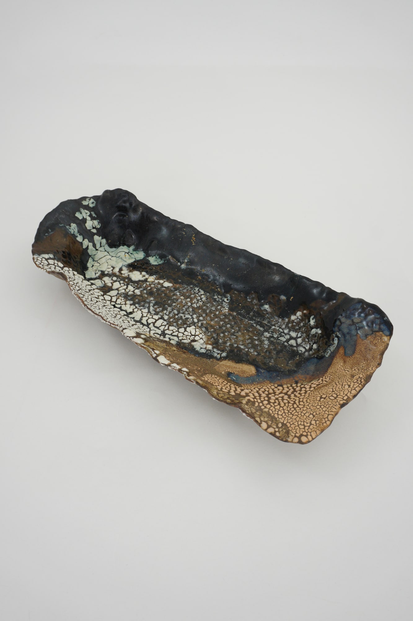 SImilar to 4038 created in 2017; Organic oval shaped, deep blue, and light brown in color with white crawl.