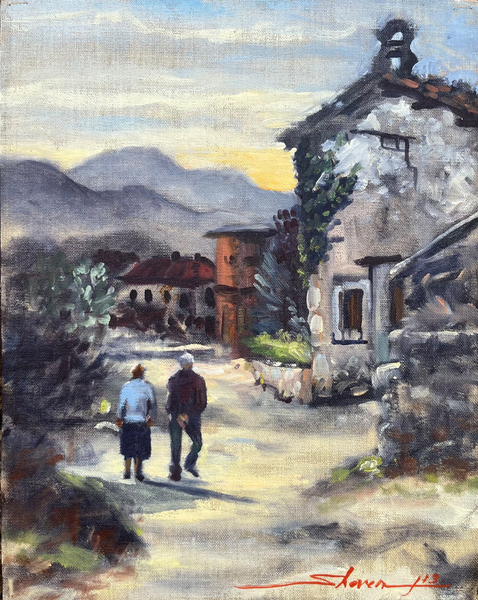 Painted as workshop Demo in Benabbio, Italy in the evening when an old couple walked past with the church bells ringing in the distance