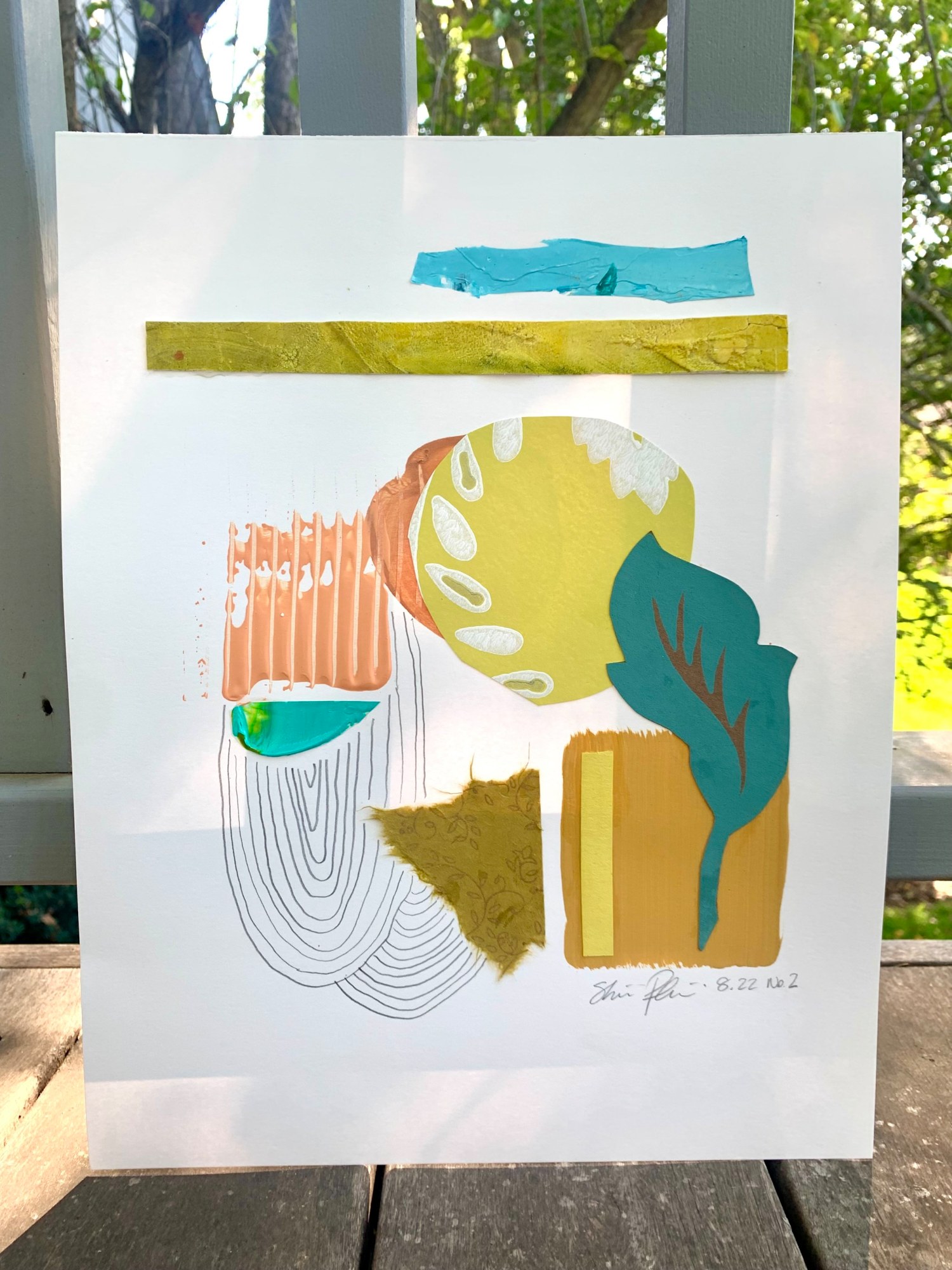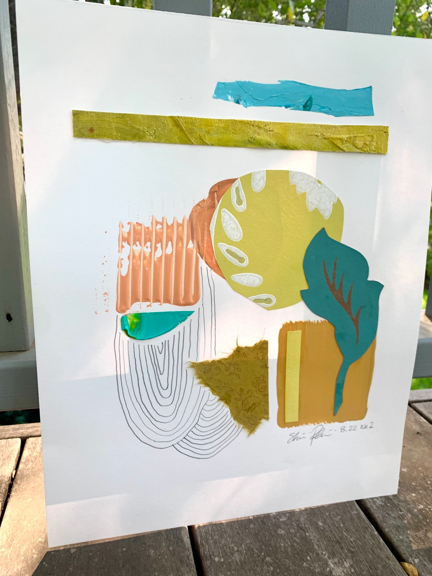 Multimedia on paper, Acrylic, recycled wallpaper, wax crayon