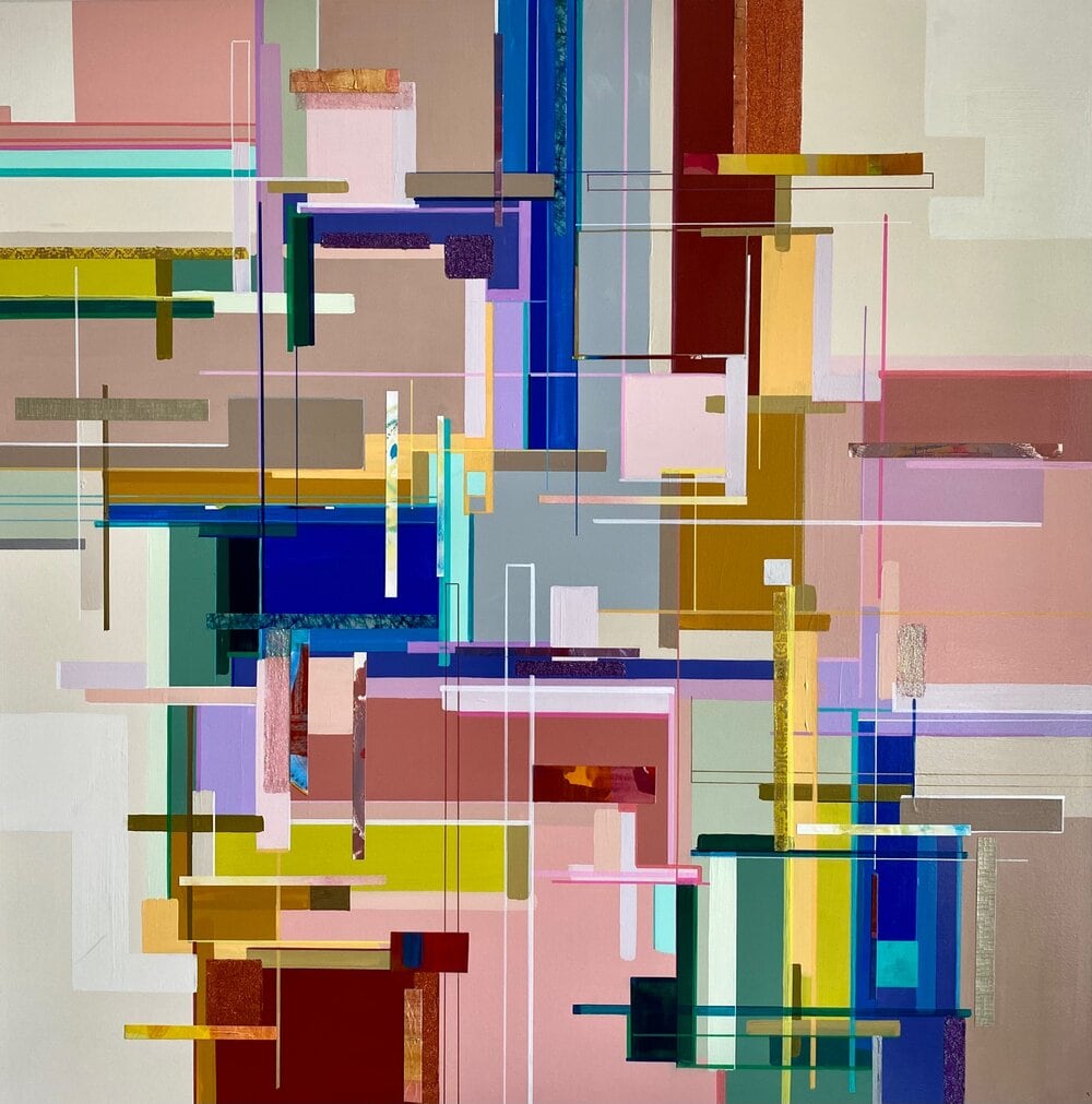 Acrylic, papers and glitter on canvas