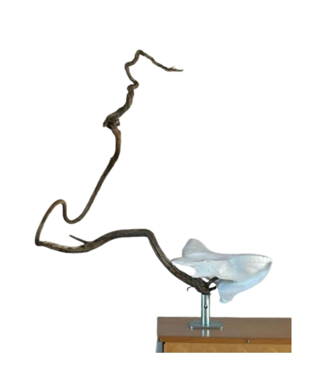 3D Printed Recyced Plastic, Porcelain, Found Wood