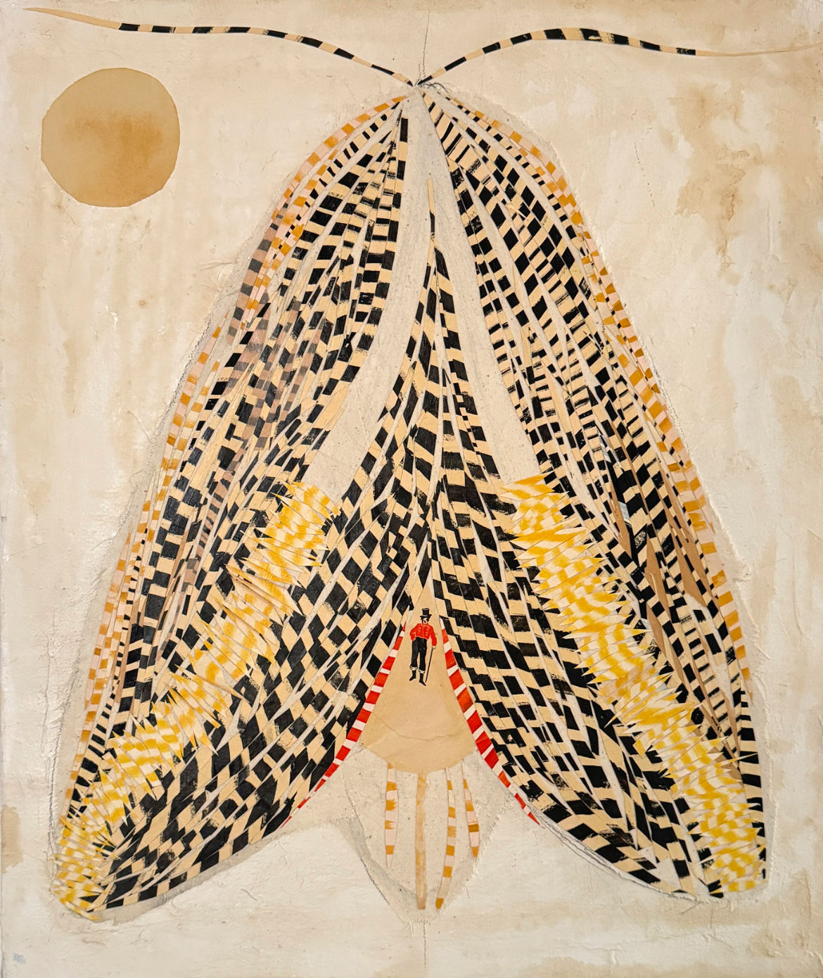 Fresco, Found Paper, Gouache, Fabric on Linen stretched on Reclaimed Silkscreen Frame